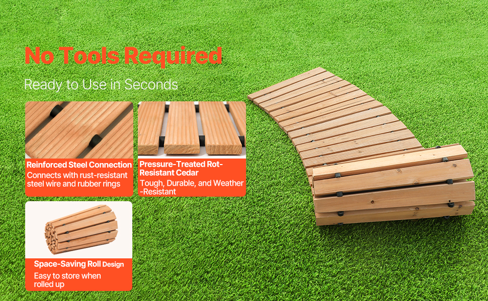 Tento drevený záhradný chodník je krásny a zároveň praktický, zabraňuje vzniku blata a zároveň poskytuje stabilitu. Je vyrobený z tlakovo ošetreného cédra a má protišmykovú konštrukciu na zaistenie bezpečnosti. Je ideálny pre záhrady, terasy a zhromaždenia, ľahko sa skladuje a je ideálny pre rôzne vonkajšie prostredie.