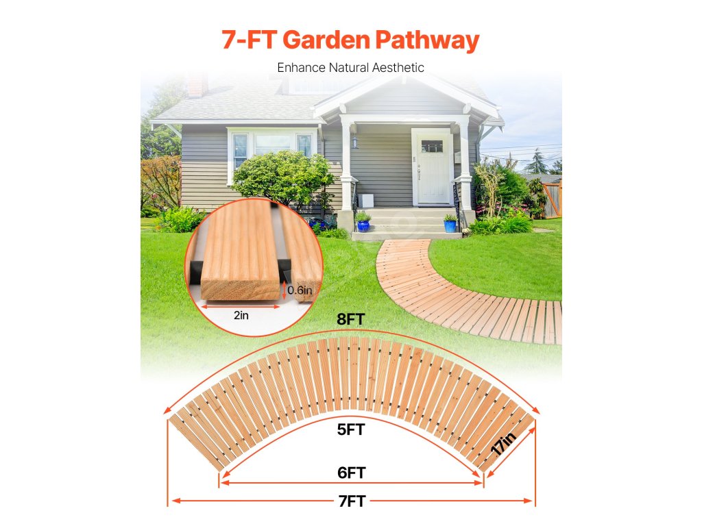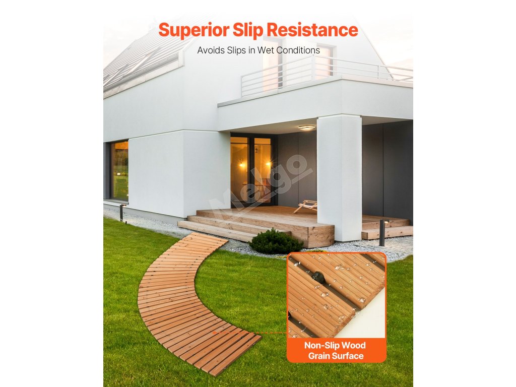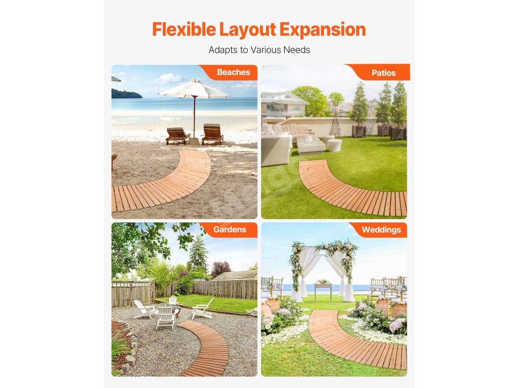 Či už na pláži, v snehu alebo pozdĺž štrkovej cesty, tento drevený záhradný chodník sa bez námahy prispôsobí a poskytne stabilný a atraktívny povrch na chôdzu.