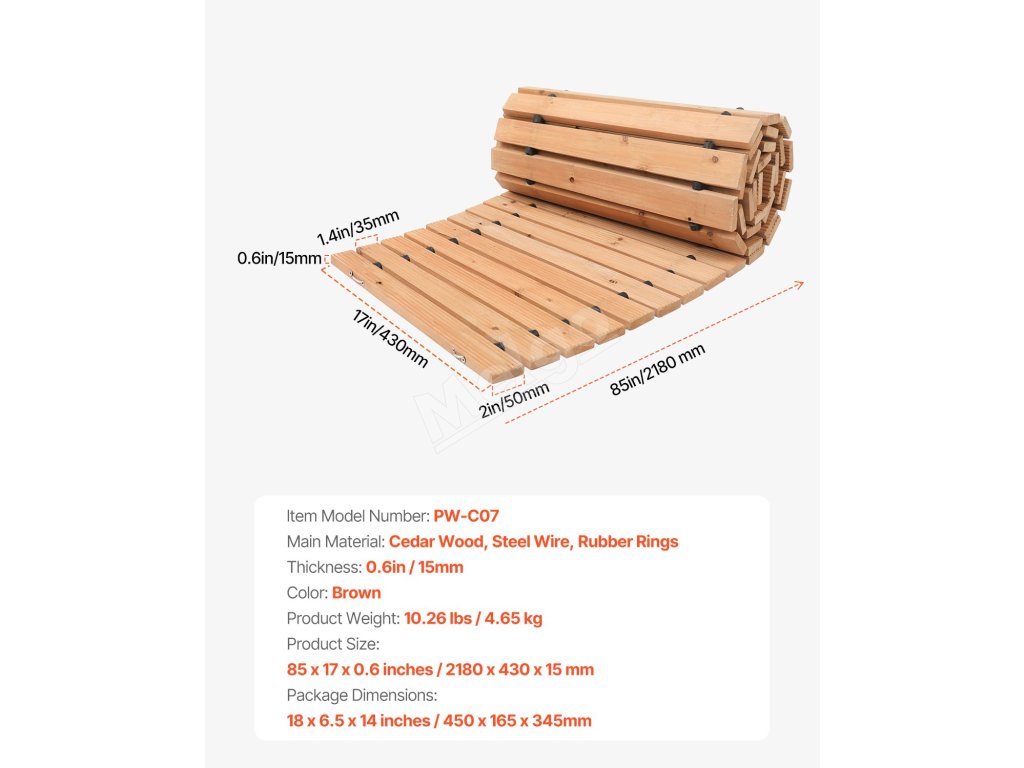 Rolovací cédrový chodník 7 ft × 17 in, protišmyk, s lanovým spojom