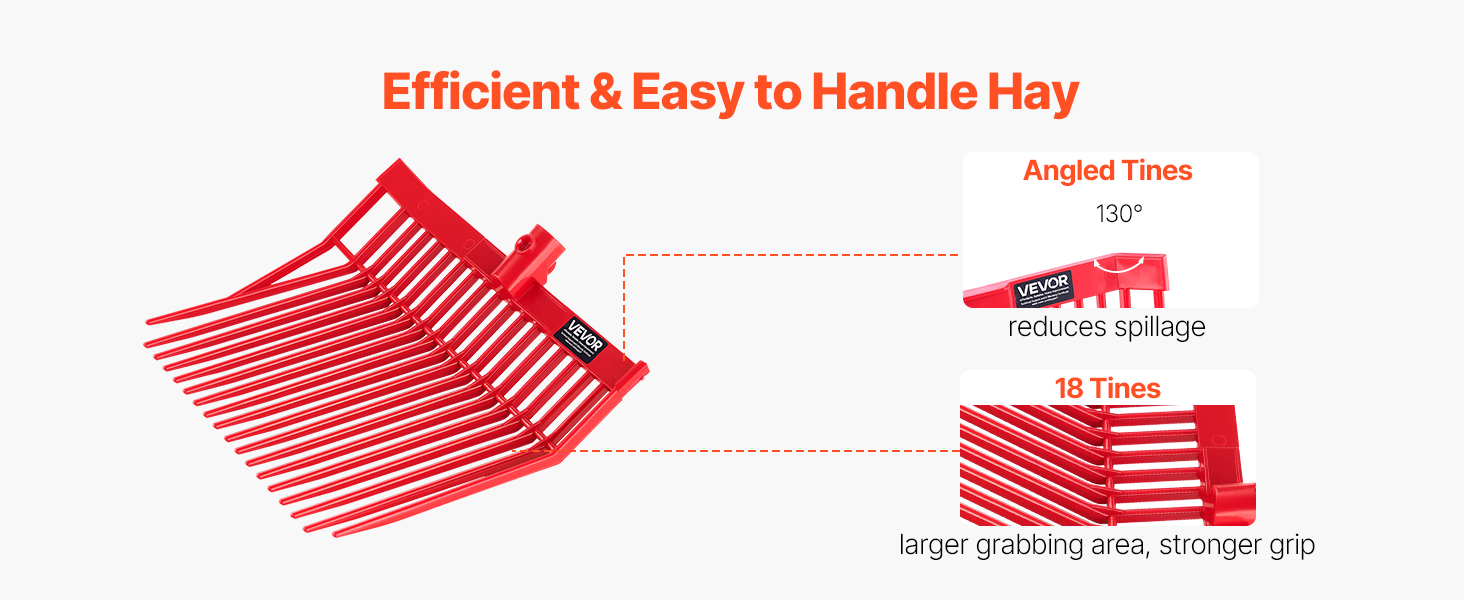 Jedinečná šikmá, pod uhlom umiestnená konštrukcia hrotov umožňuje lepšie uchopenie a zaistenie sena alebo iných sypkých materiálov, čím sa znižuje množstvo rozsypaného sena a pádov počas prepravy. Vybavený 18 ostrými hrotmi ponúka väčšiu plochu na uchopenie a väčšiu silu uchopenia.