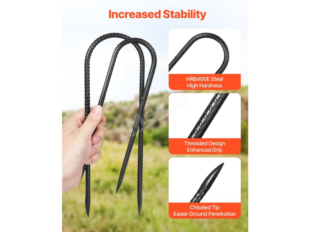 Vďaka rozšírenej hrúbke priemeru poskytujú naše tyčové koly výnimočnú odolnosť proti ťahu a stabilitu. Sú vyrobené z pozinkovanej ocele HRB400E a potiahnuté čiernou práškovou farbou pre vynikajúcu odolnosť proti korózii. Sú ideálne do silného vetra a náročného terénu a možno ich použiť v rôznych vonkajších aplikáciách.