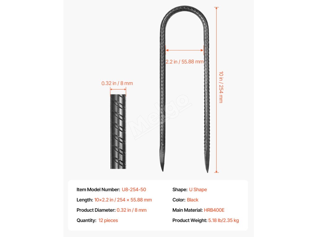 Sada zemných kotiev tvar u 254×55,88 mm, 10 in, pozinkované 12 ks