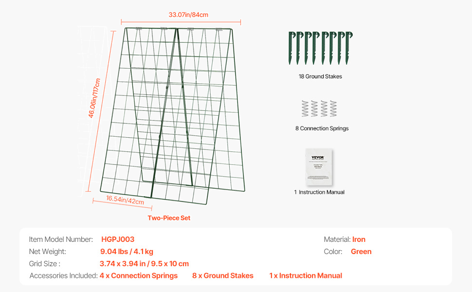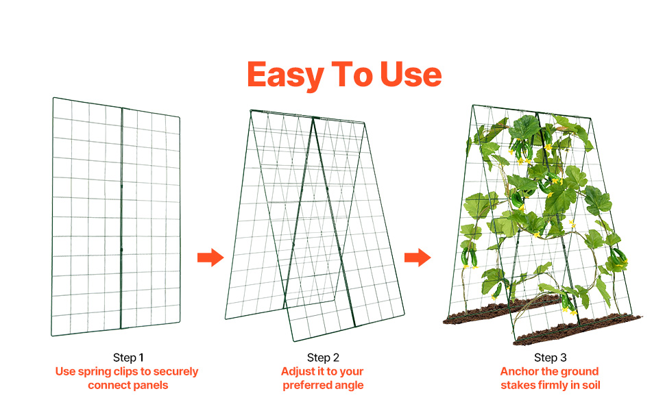 Táto mriežka na uhorky je vyrobená z odolného kovového rámu s antikoróznym náterom, je pevná a odolná voči korózii a vetru. Nevyžaduje žiadne náradie. Nastavenie jednou osobou! Ideálna pre uhorky a iné popínavé rastliny, zlepšuje prúdenie vzduchu, podporuje rast pre bohatú úrodu.