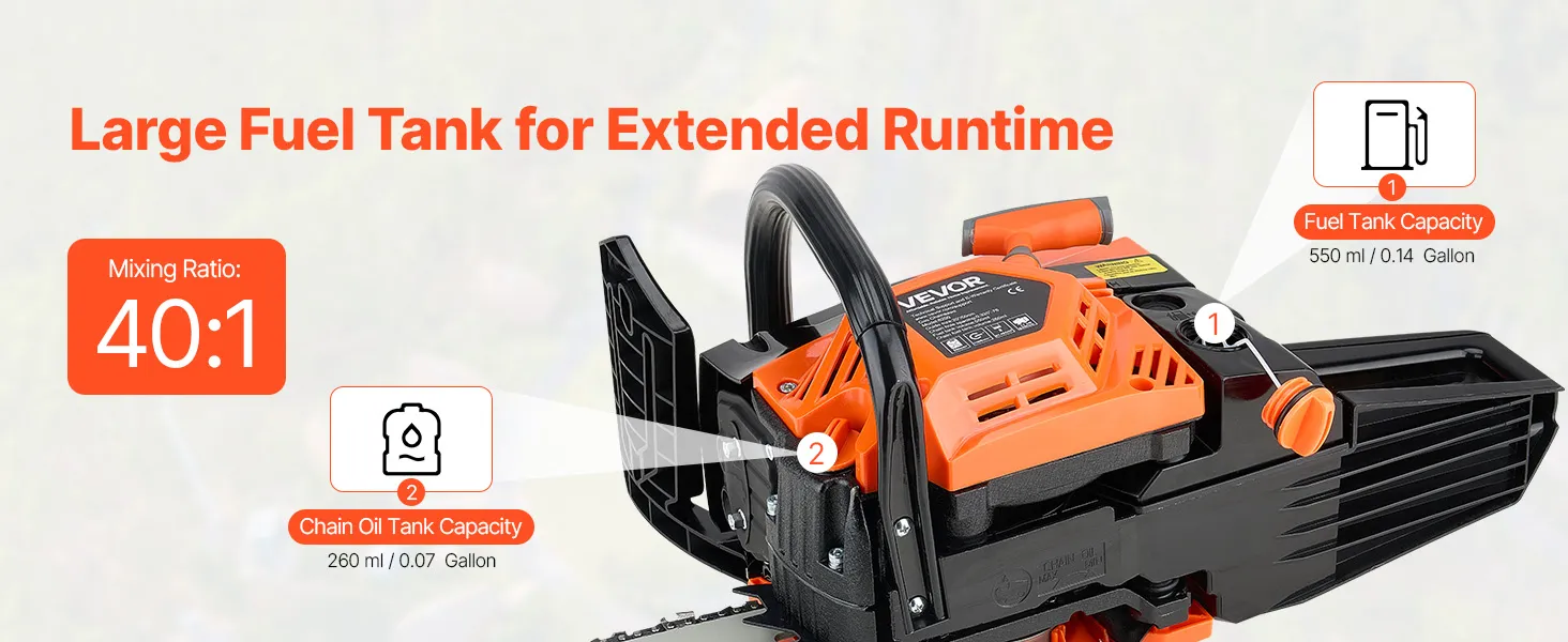 | Objem nádržky na olej na reťaz | 260 ml / 0,07 galónu |