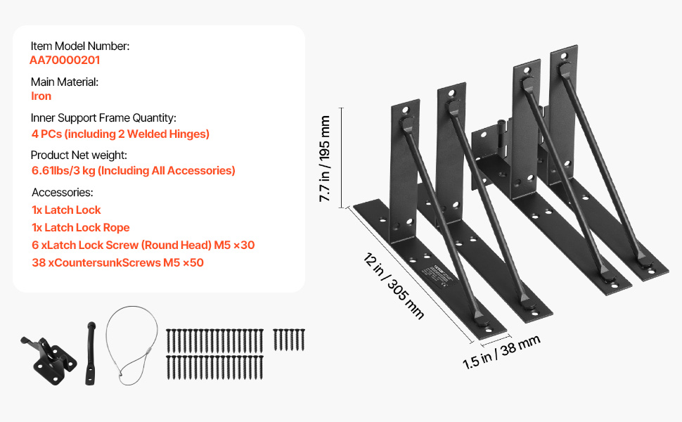 Táto kovová železná rohová konzola brány zabraňuje prehýbaniu a starnutiu, je kompatibilná s 99 % typov brán na trhu. Je odolná proti korózii a hrdzi, odolná proti silnému dažďu, snehu a extrémnym podmienkam, čím zabezpečuje dlhodobé vonkajšie použitie pre brány všetkých typov a veľkostí.