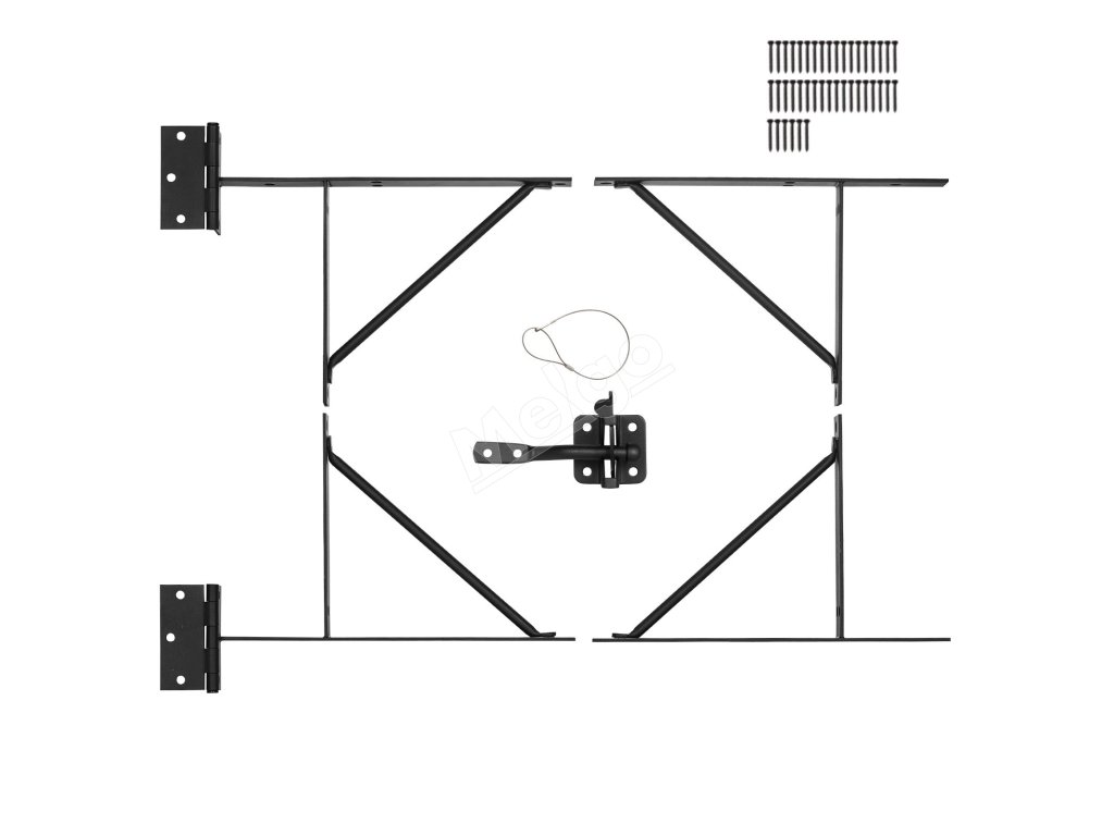 Súprava rámu brány obsahuje západku a skrutky s podrobným návodom na inštaláciu. Nie sú potrebné žiadne uhlové merania, čo umožňuje rýchlu inštaláciu aj začiatočníkom.