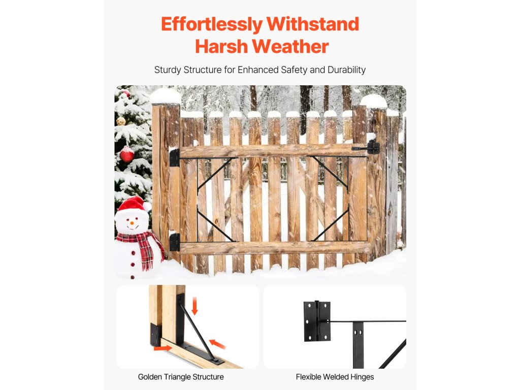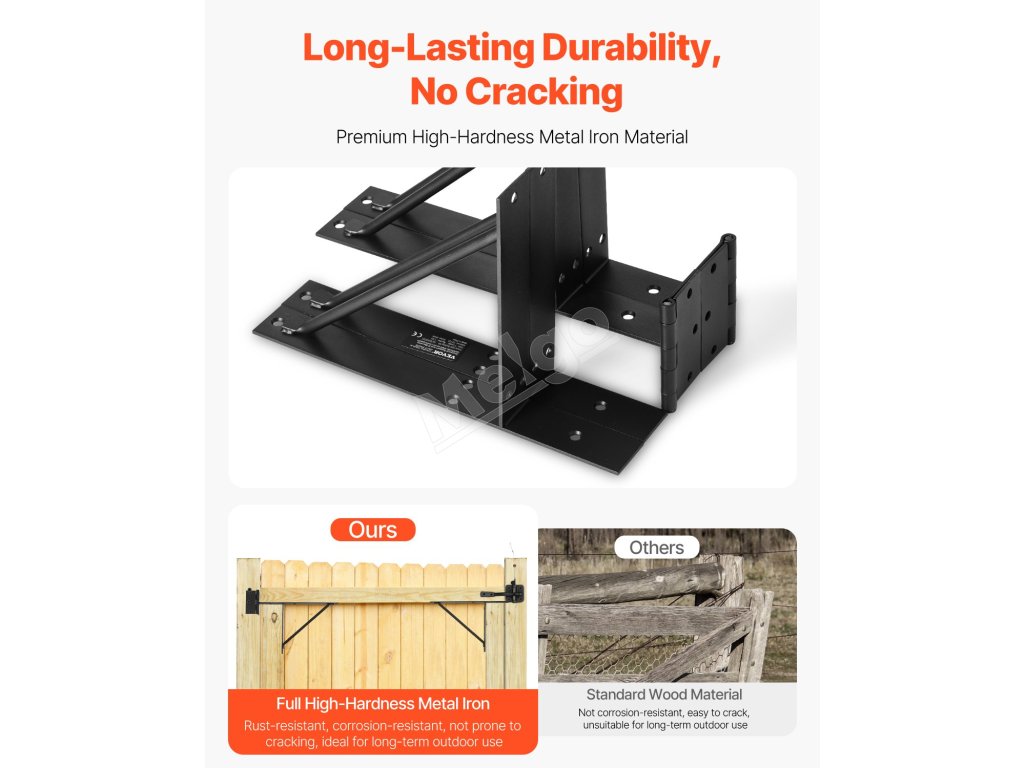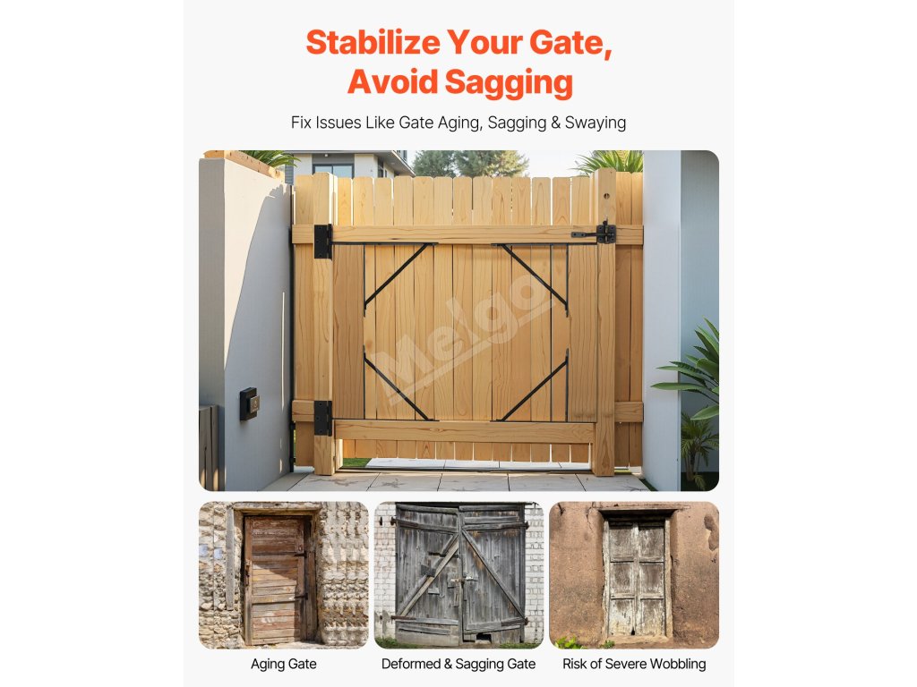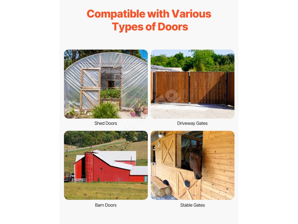 Kompatibilná s 99 % typov brán vrátane brán do prístreškov, príjazdových brán, brán pre hospodárske zvieratá, drevených okien, dverí na terasu, bazénových brán, dverí do stodoly a ďalších. Táto súprava kovania rámu brány sa hodí na drevo s rozmermi 2 x 4 palce a väčšími rozmermi, čím poskytuje univerzálne riešenie pre rôzne inštalácie brán.
