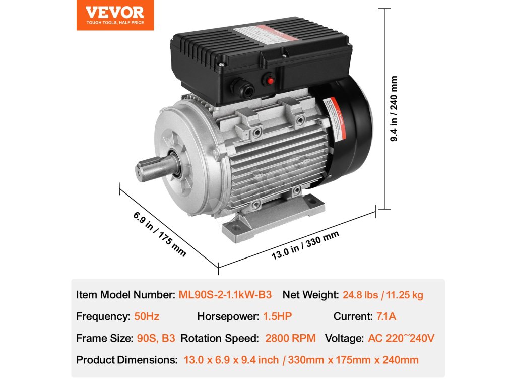Elektrický motor 1,1 kw 2800 ot/min 220~240v 7,1a 90s b3 24mm