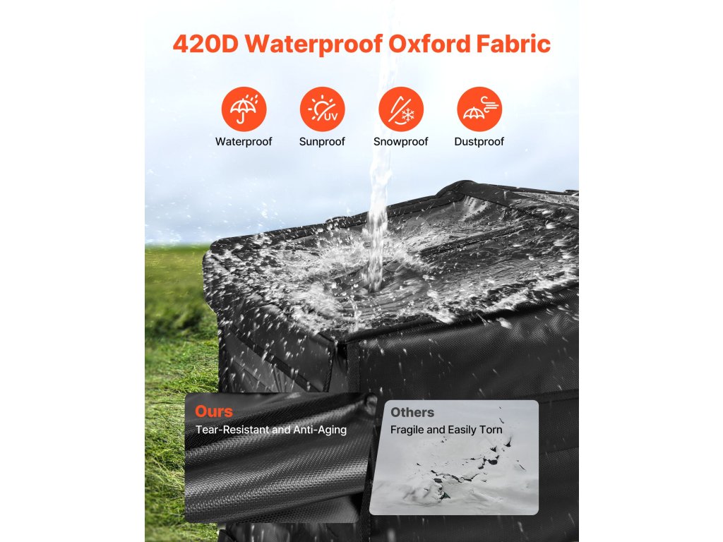 Tento univerzálny kryt generátora, vyrobený z tkaniny 420D Oxford so sieťovinou z PVC, poskytuje vynikajúcu odolnosť voči opotrebovaniu, roztrhnutiu a vode. Je skonštruovaný tak, aby zvládol dážď, sneh, slnko a dlhodobé používanie vonku vo všetkých ročných obdobiach.