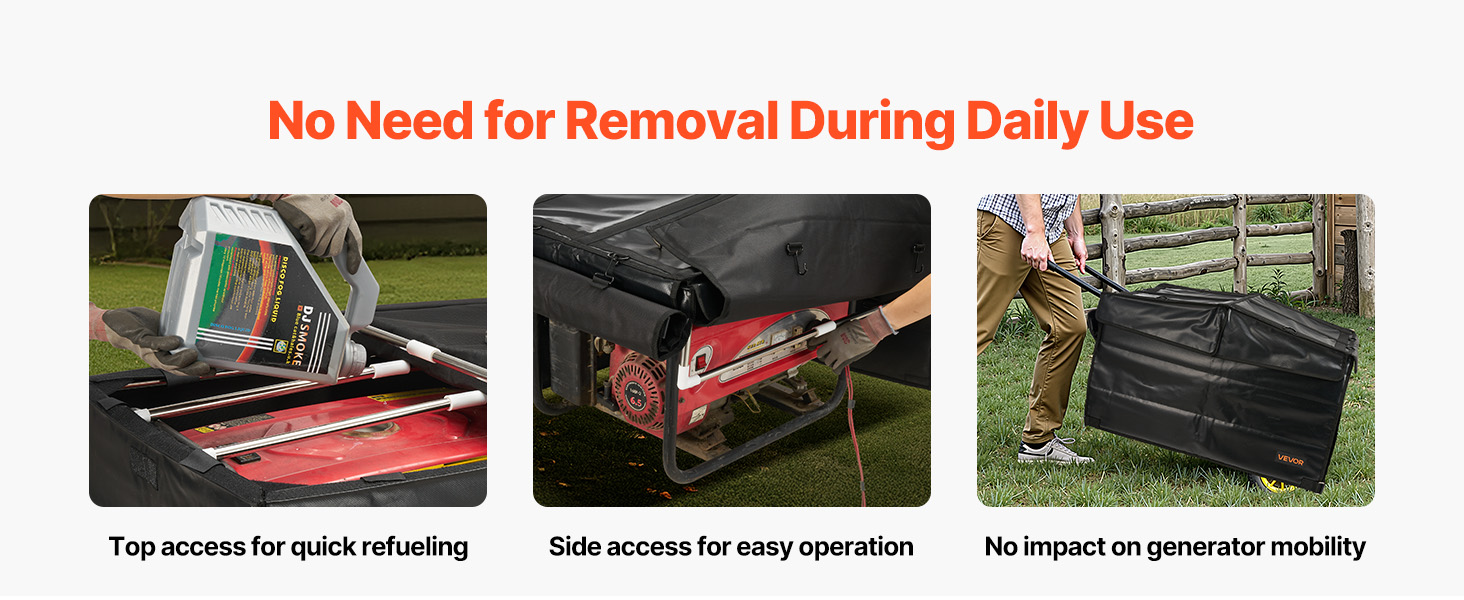 Horná klapka sa otvára na jednoduché tankovanie a bočné panely poskytujú rýchly prístup k ovládacím prvkom napájania bez nutnosti odpojenia vodotesného krytu generátora. Ľahko sa premiestňuje a upravuje v rôznych nastaveniach, čím zvyšuje efektivitu práce na akomkoľvek mieste.