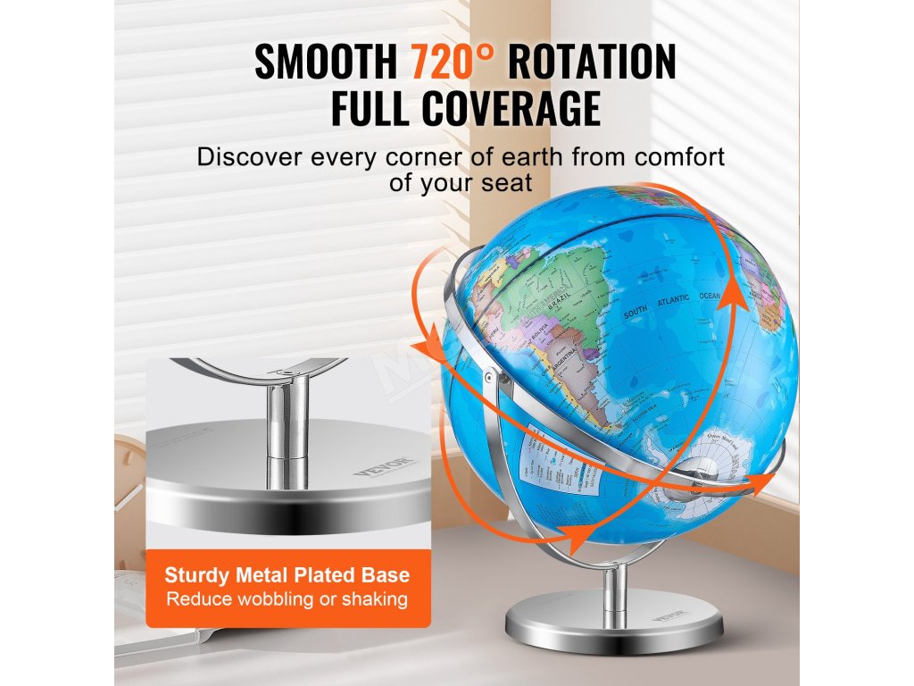 Náš skvele spracovaný kovový stojan ponúka možnosť otáčania o 720°, vďaka čomu môžu deti bez námahy pozorovať Zem z akéhokoľvek uhla. Vďaka stabilnej základni, ktorá minimalizuje kolísanie, tento stojan zabezpečuje menej otrasov v porovnaní s ľahkými plastovými základňami, čím poskytuje zvýšenú odolnosť a stabilitu!