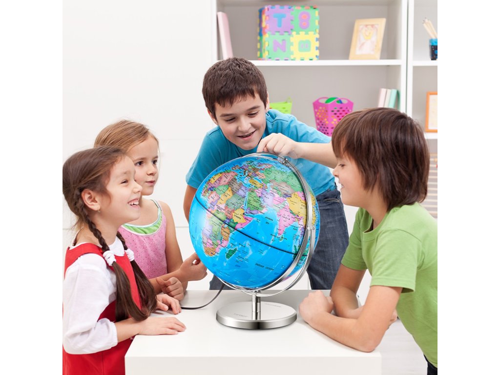 Tento pútavý glóbus je ideálny na zoznámenie detí so zázrakmi geografie. Jeho viacsmerové otáčanie zlepšuje priestorové povedomie a rozširuje ich obzory. Skúmaním geografických aj astronomických poznatkov tento glóbus pomáha rozvíjať vedecké myslenie mladých ľudí.