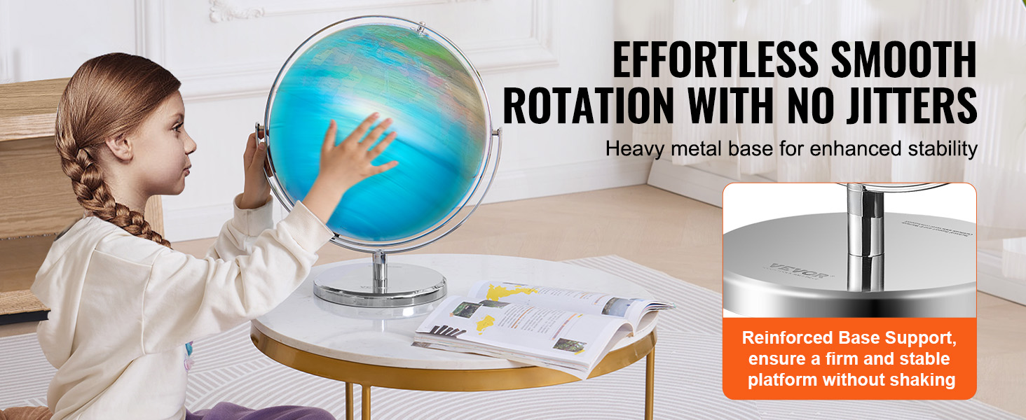 Náš skvele spracovaný kovový stojan ponúka možnosť otáčania o 720°, vďaka čomu môžu deti bez námahy pozorovať Zem z akéhokoľvek uhla. Vďaka stabilnej základni, ktorá minimalizuje kolísanie, tento stojan zabezpečuje menej otrasov v porovnaní s ľahkými plastovými základňami, čím poskytuje zvýšenú odolnosť a stabilitu!