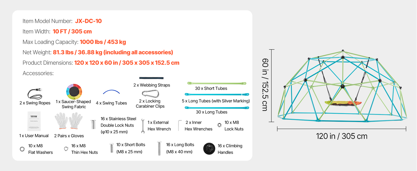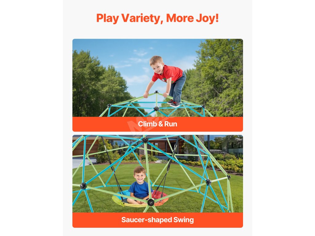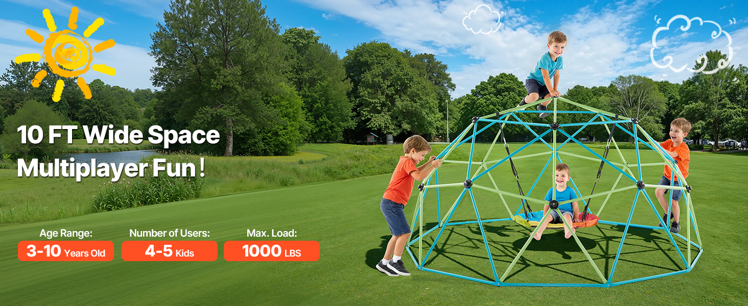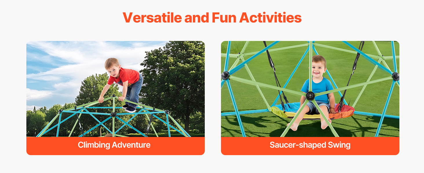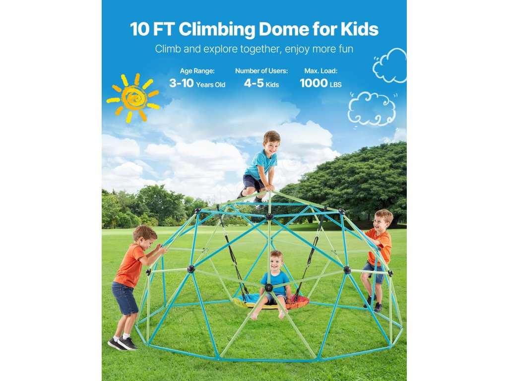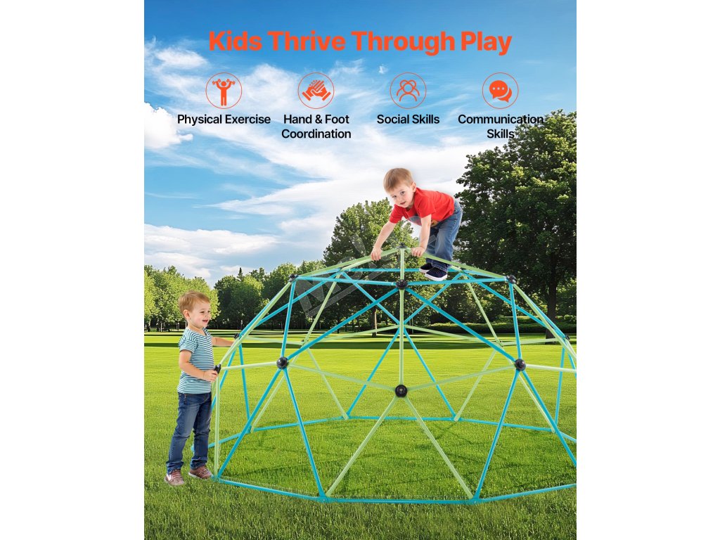 Nechajte deti liezť, hrať sa, skúmať a rásť s našou 10FT lezeckou kupolou. Vďaka stabilnej konštrukcii, zosilneným oceľovým rúrkam, protišmykovým držadlám, nosnosti 1000 libier a hojdačke v tvare taniera je ideálna na posilnenie fyzickej sily, koordinácie, komunikácie a sociálnych zručností.