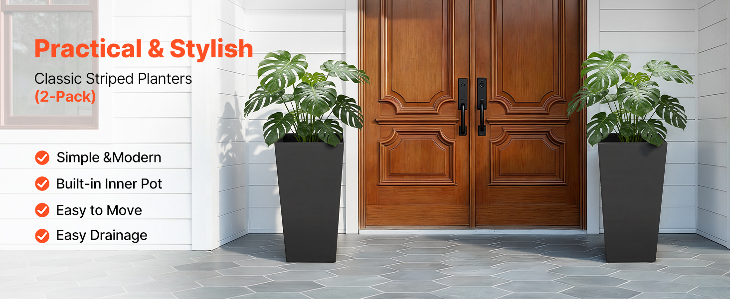 Tieto viacúčelové kvetináče na prednú verandu uľahčujú pestovanie zelene. Vďaka vstavaným odtokovým otvorom odolávajú hnitiu koreňov a podporujú živý a bujný rast.