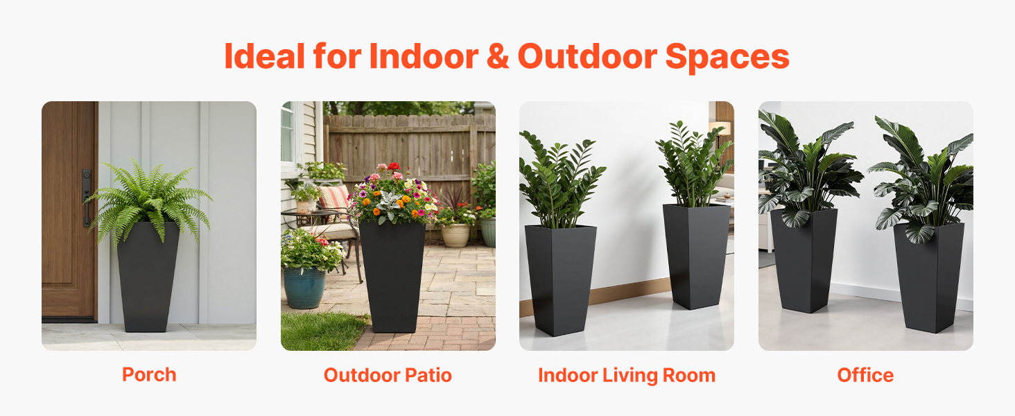 Tieto vonkajšie kvetináče na verandu sa vyznačujú čistým, minimalistickým vzhľadom, ktorý sa hodí priamo na verandu, do vstupnej haly, na terasu alebo do záhrady, a rovnako dobre fungujú aj v interiéri alebo v kancelárii – jednoduchý spôsob, ako kdekoľvek pridať zeleň a štýl.