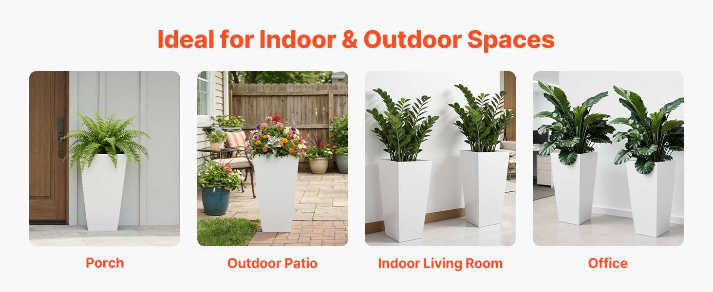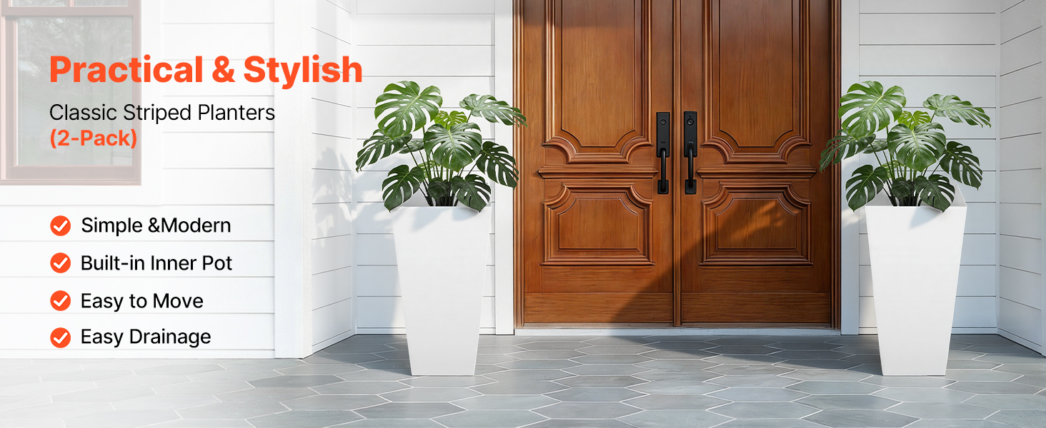 Tieto vonkajšie kvetináče na verandu sa vyznačujú čistým, minimalistickým vzhľadom, ktorý sa hodí priamo na verandu, do vstupnej haly, na terasu alebo do záhrady, a rovnako dobre fungujú aj v interiéri alebo v kancelárii – jednoduchý spôsob, ako kdekoľvek pridať zeleň a štýl.