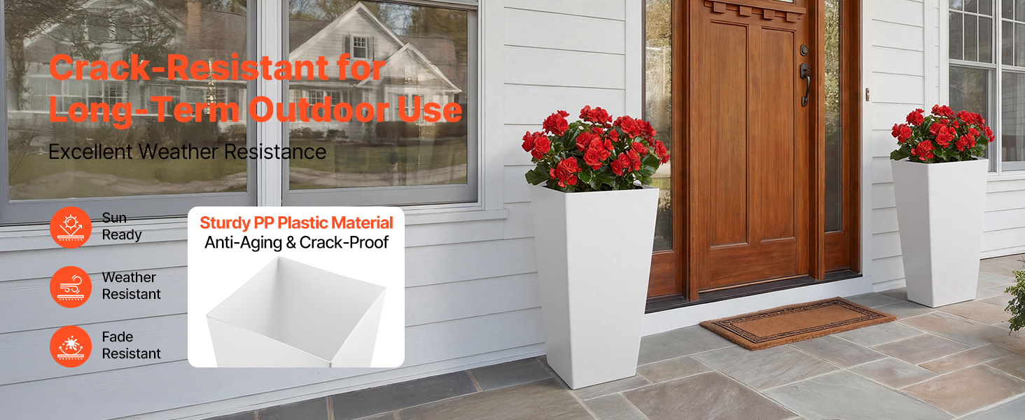 Tieto vysoké vonkajšie kvetináče sú vyrobené z odolného PP plastu a odolávajú opotrebeniu, vyblednutiu a praskaniu. Sú navrhnuté tak, aby odolali dažďu, slnku a každodennému používaniu, a zostávajú stabilné a v rovnej polohe, čím zaručujú dlhodobú životnosť vo vonkajšom prostredí.