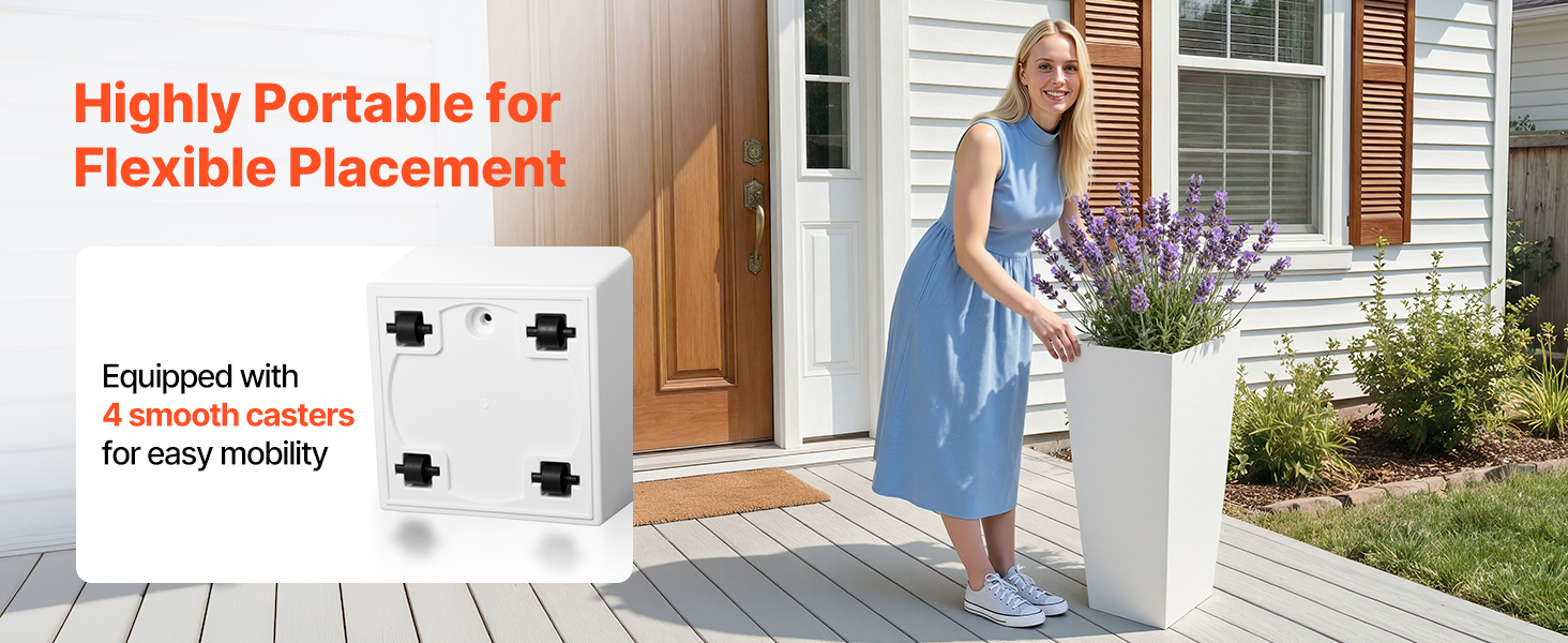 Vďaka hladko sa otáčajúcim kolieskam na spodnej strane môžete tieto vysoké kvetináče na prednú verandu posúvať horizontálne medzi jednotlivými miestami, a to aj v stiesnených alebo úzkych priestoroch.