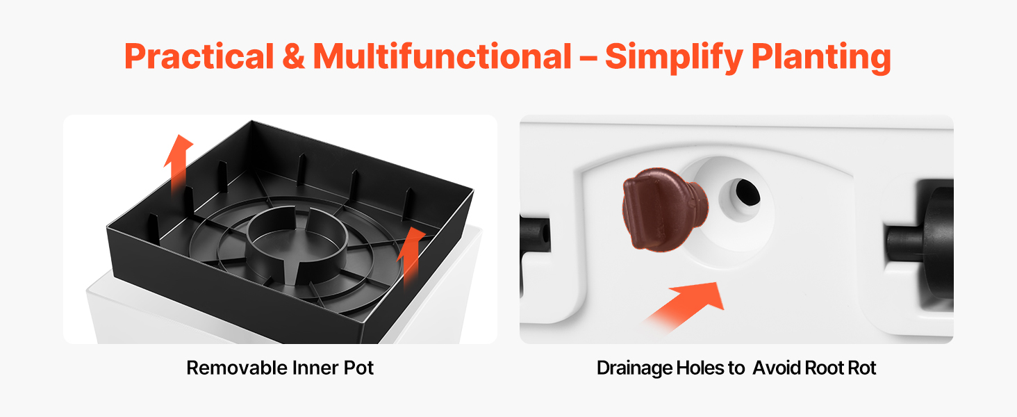 | Rozmery vnútorného kvetináča | 11,22 x 11,22 x 2,56 palca / 285 x 285 x 65 mm |