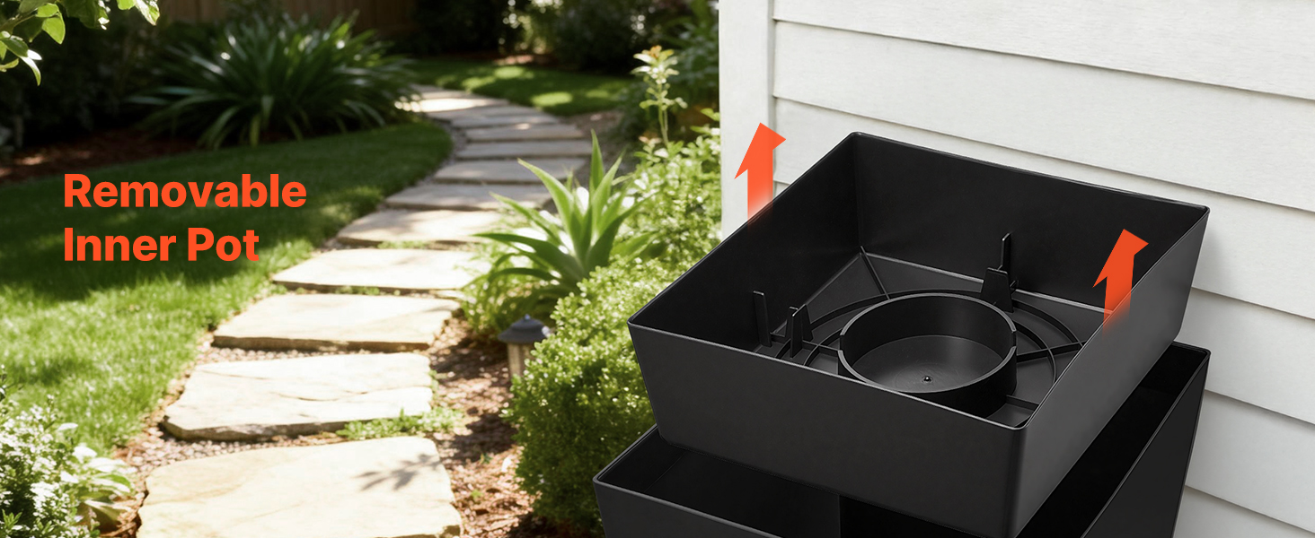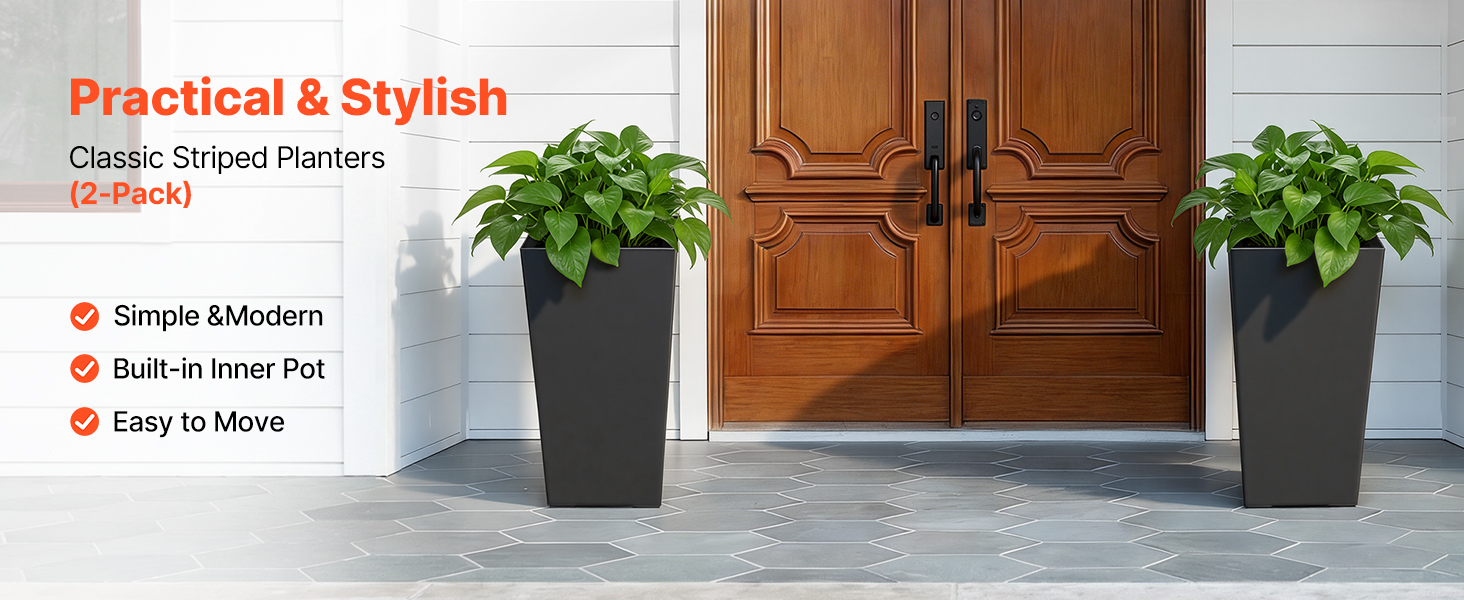 Tieto viacúčelové kvetináče na prednú verandu uľahčujú pestovanie zelene. Vďaka vstavaným odtokovým otvorom odolávajú hnitiu koreňov a podporujú živý a bujný rast.