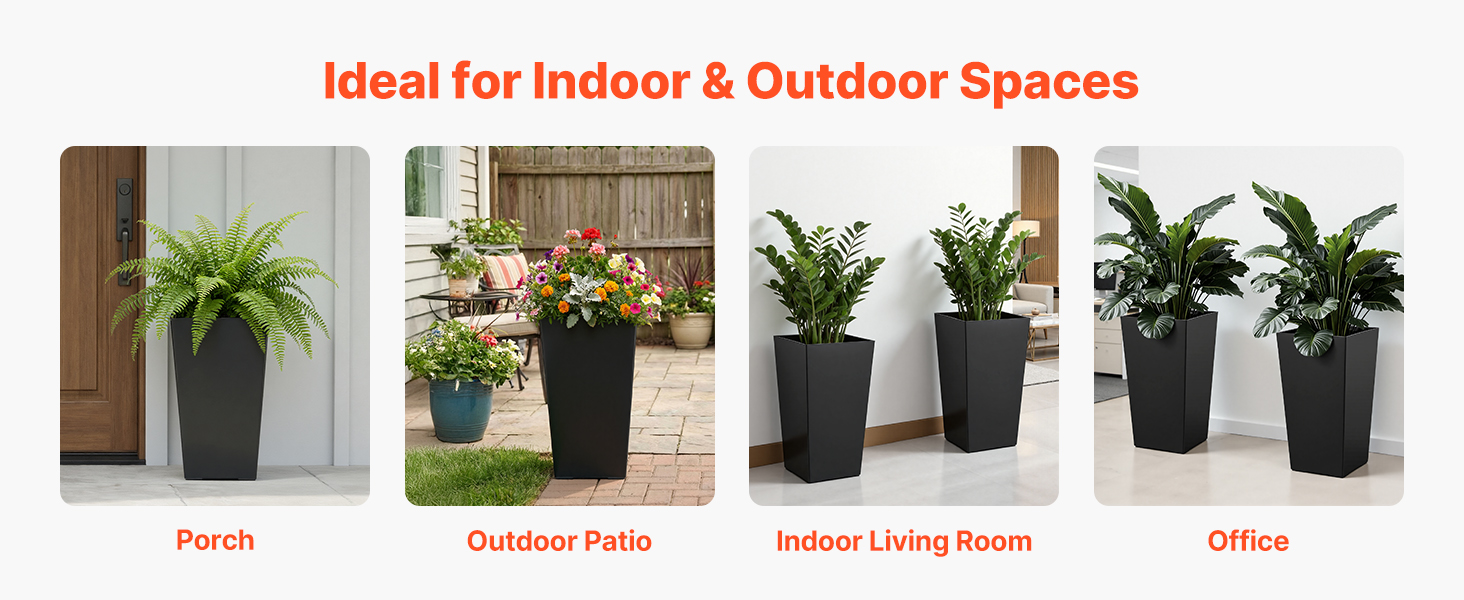 Tieto vysoké kvetináče na prednú verandu vám umožňujú ľahko ich premiestňovať medzi rôznymi miestami, a to aj v stiesnených alebo úzkych priestoroch.