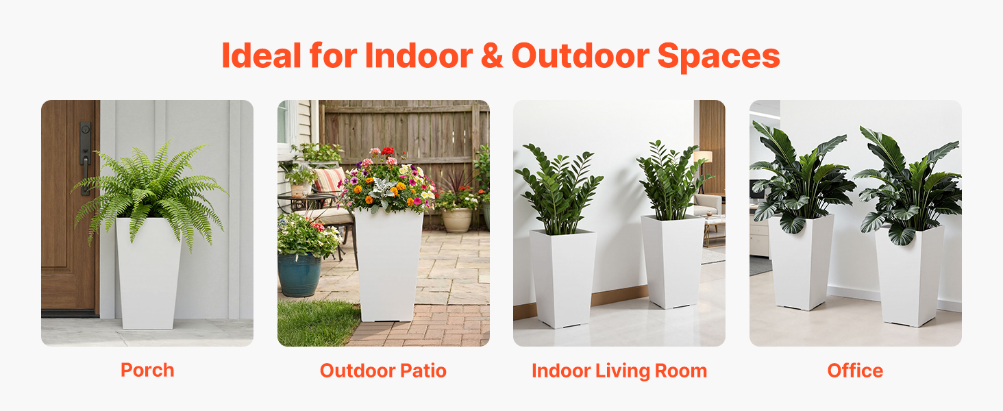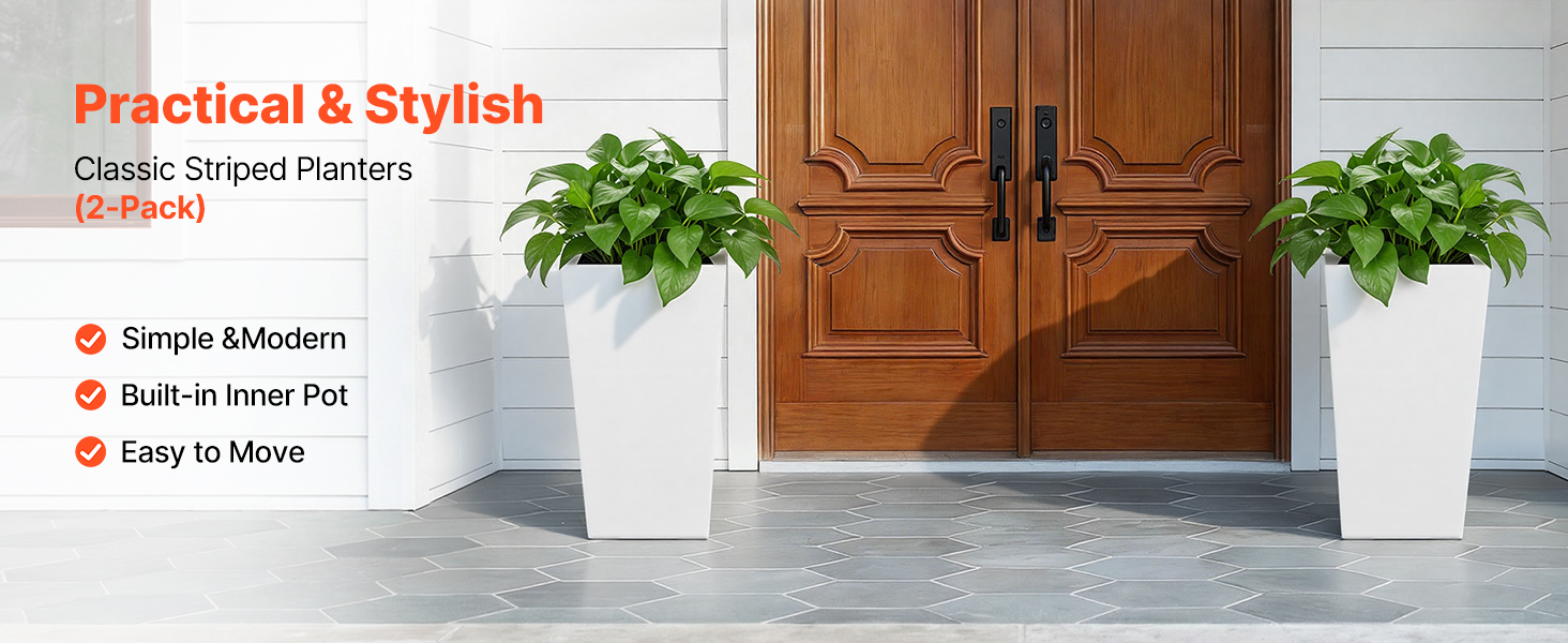 Tieto vonkajšie kvetináče na verandu sa vyznačujú čistým, minimalistickým vzhľadom, ktorý sa hodí na verandu, do vstupnej haly, na terasu alebo do záhrady, a rovnako dobre fungujú aj v interiéri alebo v kancelárii – sú jednoduchým spôsobom, ako kdekoľvek pridať zeleň a štýl.