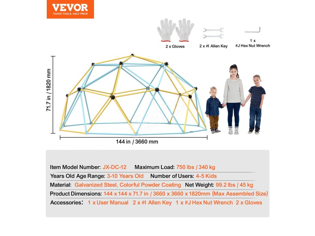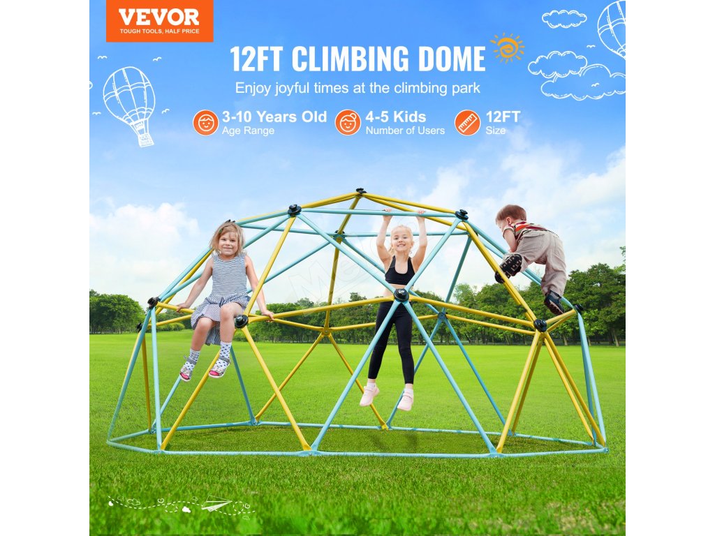 Naša 12FT geometrická lezecká kupola umožňuje súčasnú hru 4-5 detí vo veku 3-10 rokov, čím sa doma vytvorí rodinná zábavná zóna. Ideálna na domácu hru počas dní, keď nie je možné ísť von. Vhodná aj na použitie v materskej škole a na detskom ihrisku.