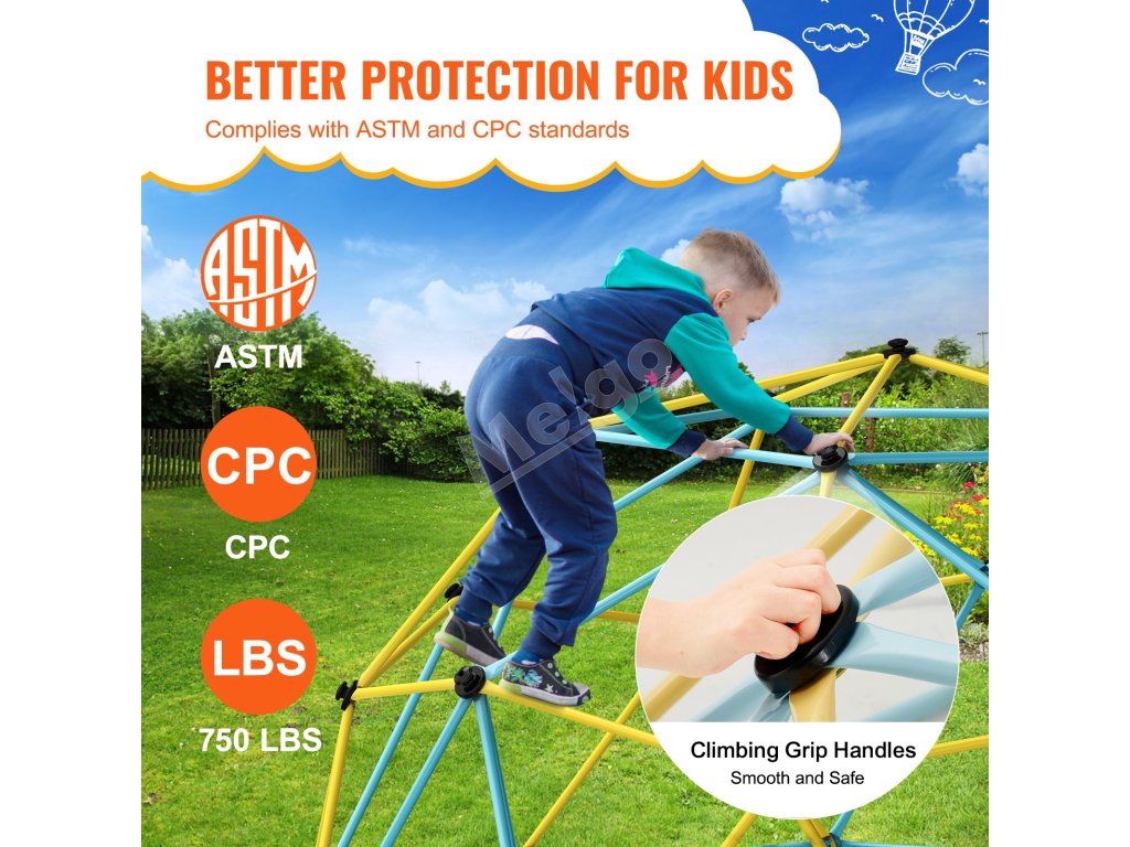 Dizajn rukoväte na lezenie vhodný pre deti s hladším povrchom znižuje riziko porezania pri lezení. Naše lezecké kupoly sú certifikované podľa noriem ASTM a CPC, aby ste boli ešte pokojnejší.