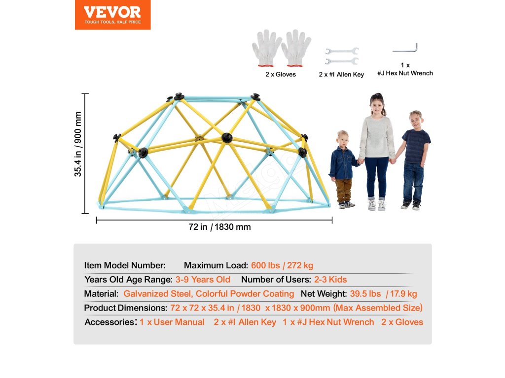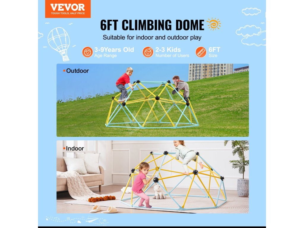 Geometrická lezecká kupola 6FT pre deti 3–9 rokov, nosnosť 600LBS