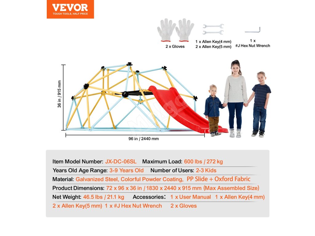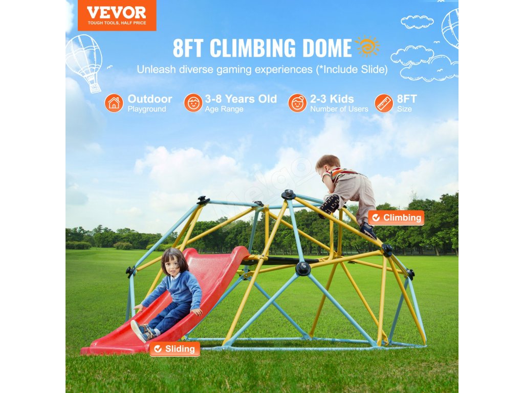 Lezecký geodetický dom s tobogánom 8FT, pre deti 3–9 rokov, 600LBS