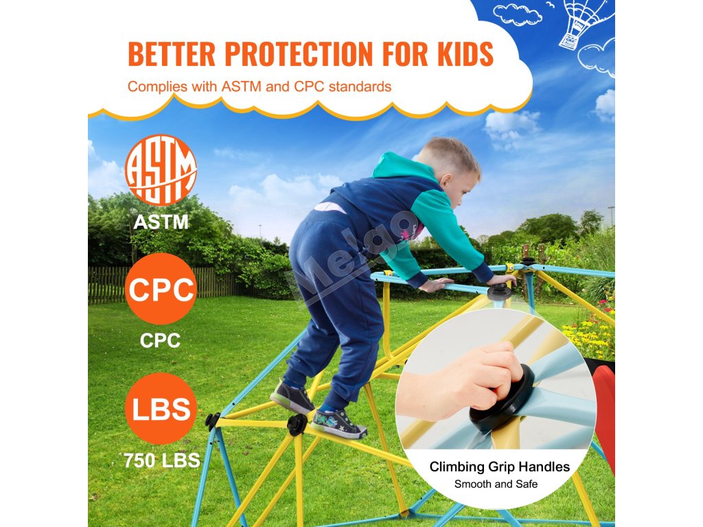 Dizajn rukoväte na lezenie vhodný pre deti s hladším povrchom znižuje riziko porezania pri lezení. Naše lezecké kupoly sú certifikované podľa noriem ASTM a CPC, aby ste boli ešte pokojnejší.