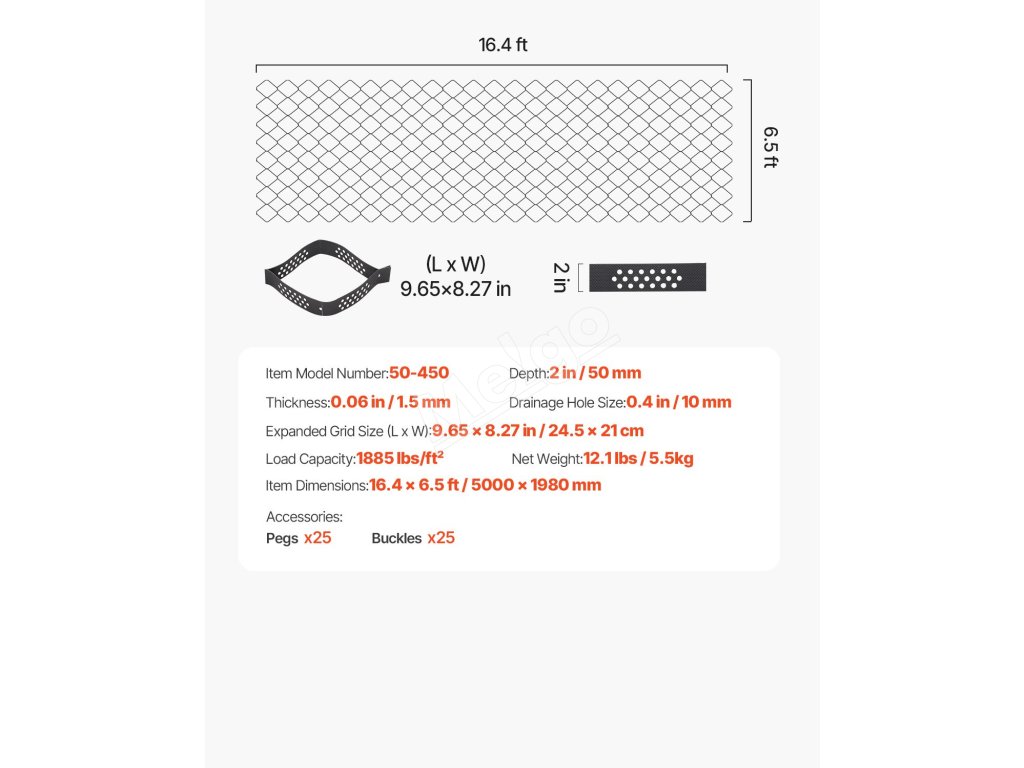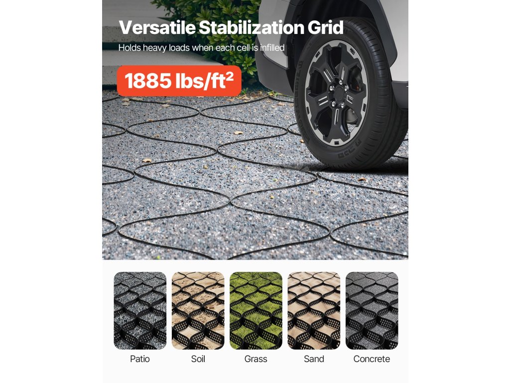 Odpoveď: Pri naplnení buniek je zaťaženie 1885 libier na štvorcový meter. Upozorňujeme, že pred inštaláciou mriežky musíte zabezpečiť rovný podklad, ale aj pevné upevnenie mriežky. >
