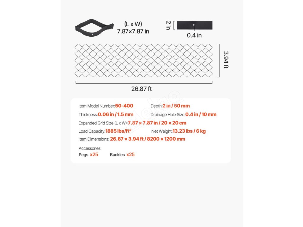 Mriežka na štrk hĺbka 2 inch, 8200×1200 mm, nosnosť 1880 lbs per sq ft