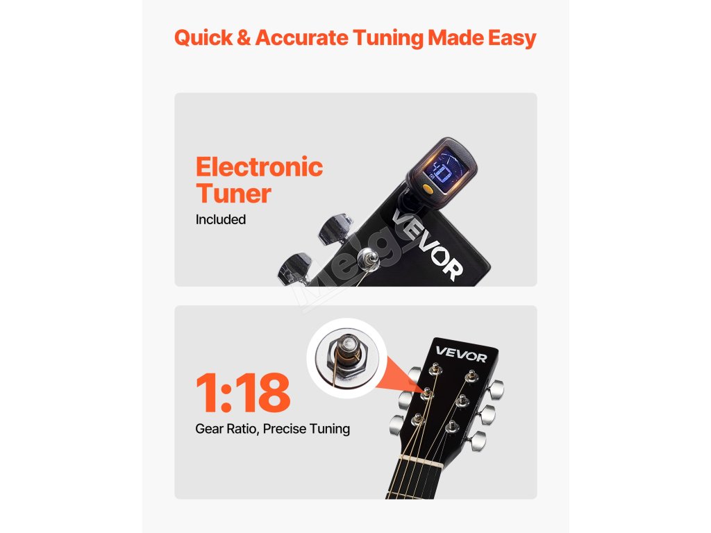 Naša akustická gitara je vybavená hladkým palisandrovým hmatníkom, ktorý vám poskytne pohodlný zážitok z hry a lepší pôžitok z nej.
