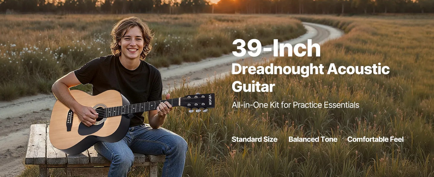 Táto akustická gitara má štandardnú veľkosť konštrukcie s vyváženým tónom a poskytuje pohodlný úchop na hranie bez námahy. Je ideálna pre začiatočníkov a cvičenie, zaručuje radostný a plynulý hudobný zážitok.