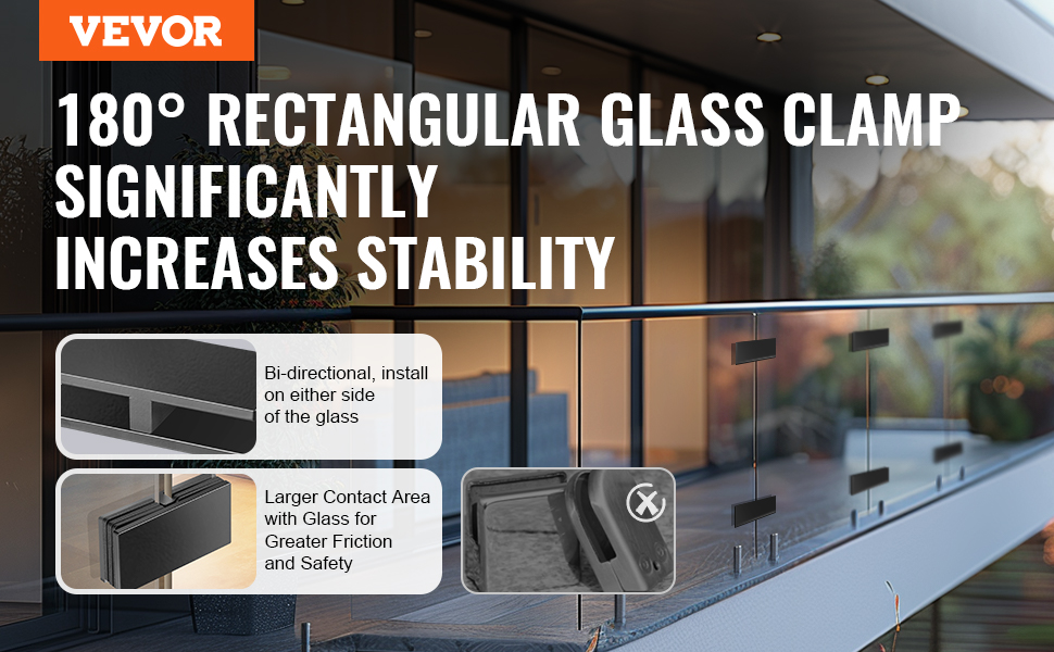 Na rozdiel od svoriek na sklo v tvare U má táto štvorcová svorka dvojité otvory na lepšiu podporu a silnú nosnosť. Štvorcový dizajn poskytuje väčšiu kontaktnú plochu, čím ponúka väčšiu stabilitu a bezpečnosť.