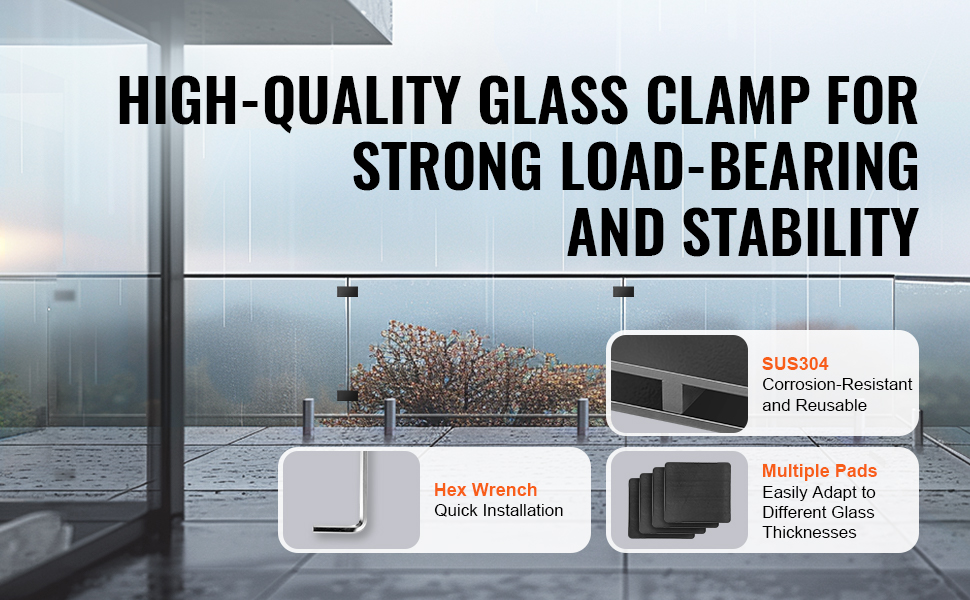 Naša svorka na sklo je vyrobená z prvotriednej nehrdzavejúcej ocele, odolnej voči korózii a vhodnej do všetkých poveternostných podmienok. Možno ju opakovane používať a ľahko sa prispôsobí rôznym hrúbkam skla.
