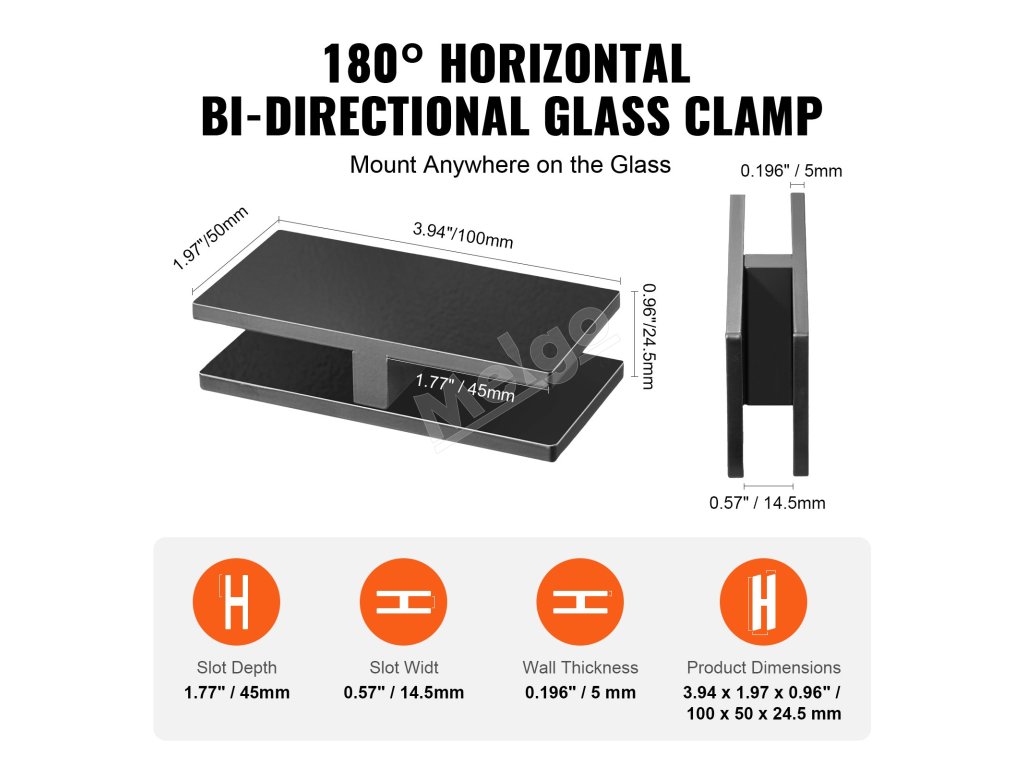 Na rozdiel od svoriek na sklo v tvare U má táto štvorcová svorka dvojité otvory na lepšiu podporu a silnú nosnosť. Štvorcový dizajn poskytuje väčšiu kontaktnú plochu, čím ponúka väčšiu stabilitu a bezpečnosť.