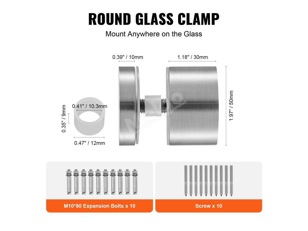 Svorky na sklo 10 ks okrúhle 316 nerez pre kalené sklo 0.31"-0.62"