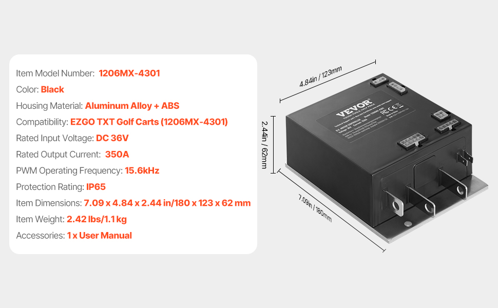 Náš regulátor otáčok golfového vozíka je vhodný pre modely EZGO TXT 1206MX-4301 a umožňuje jednoduché zapojenie a používanie. Vďaka 36V vstupu a 350A výstupu, vodotesnosti IP65 a krytu z hliníkovej zliatiny a ABS vám zaručí pokojnú jazdu. Rýchly štart a vysokofrekvenčná odozva 15,6 kHz zvyšujú účinnosť a výkon.