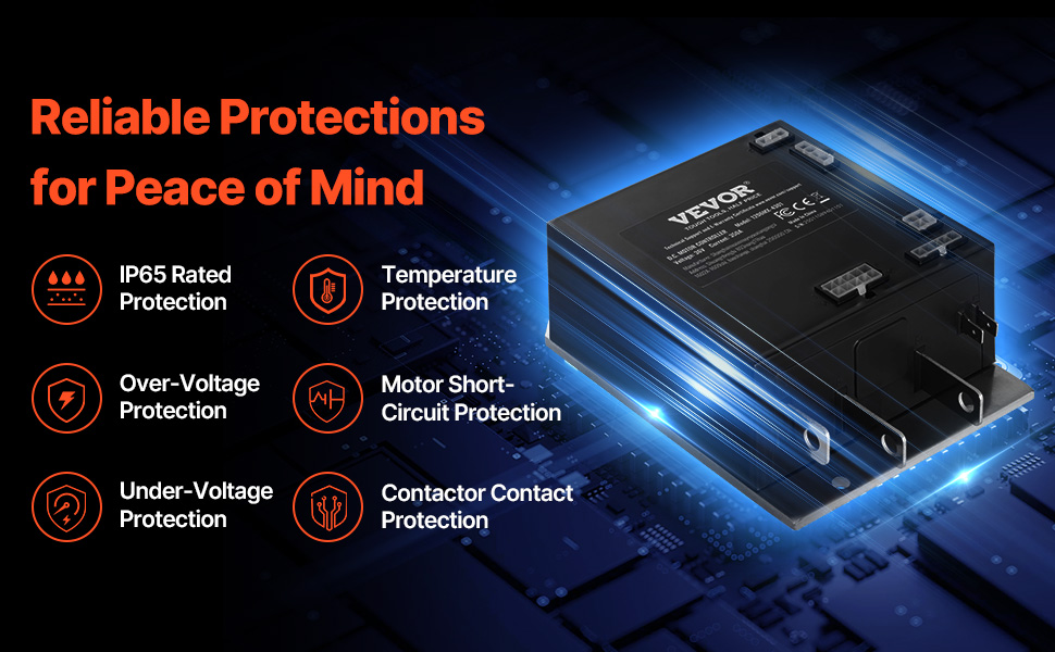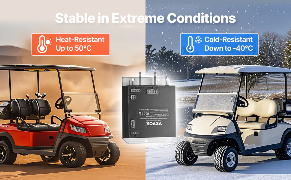 Regulátor golfového vozíka má viacero bezpečnostných funkcií na zachovanie stabilnej prevádzky aj v nepriaznivom počasí. Je navrhnutý tak, aby zabezpečil váš golfový vozík počas každej jazdy pre spoľahlivosť.