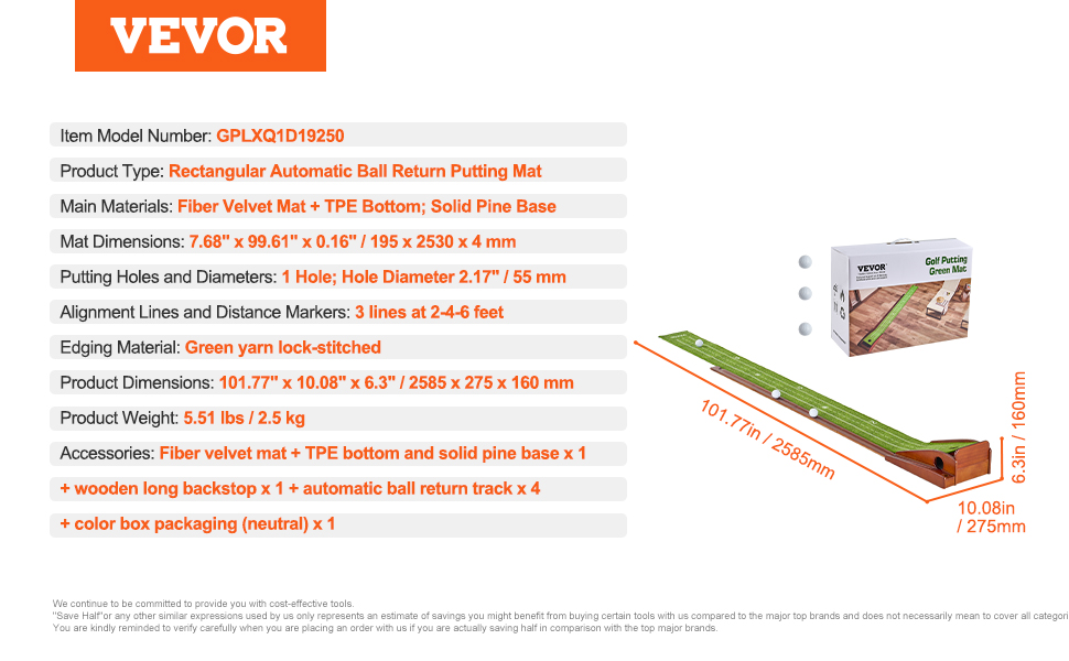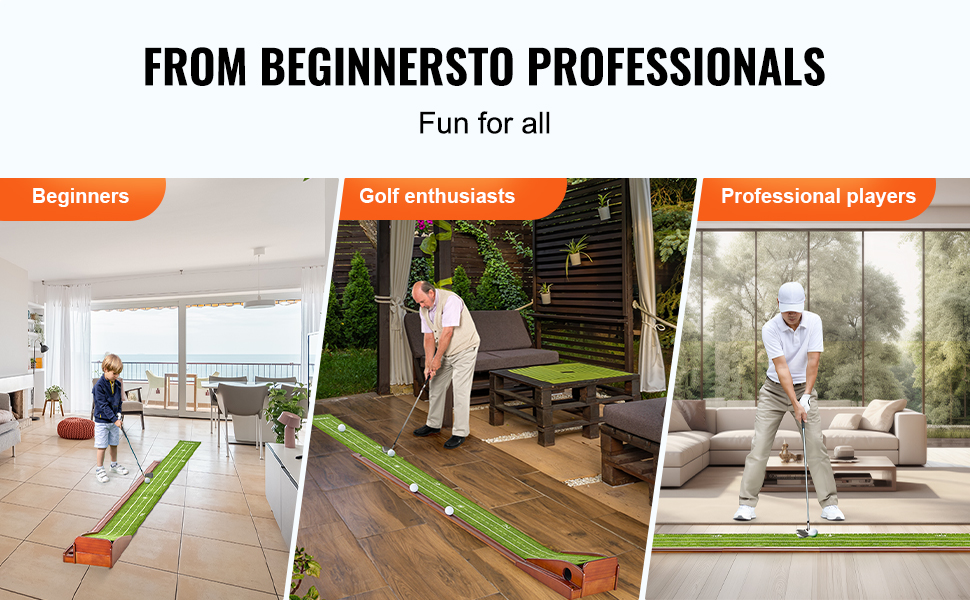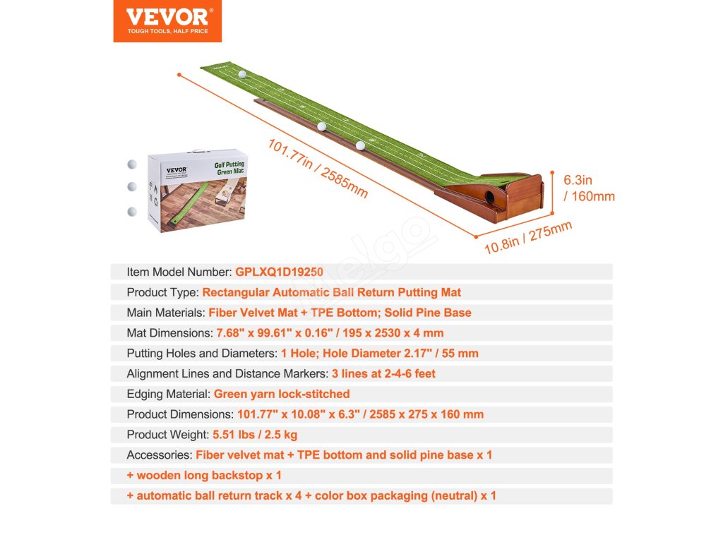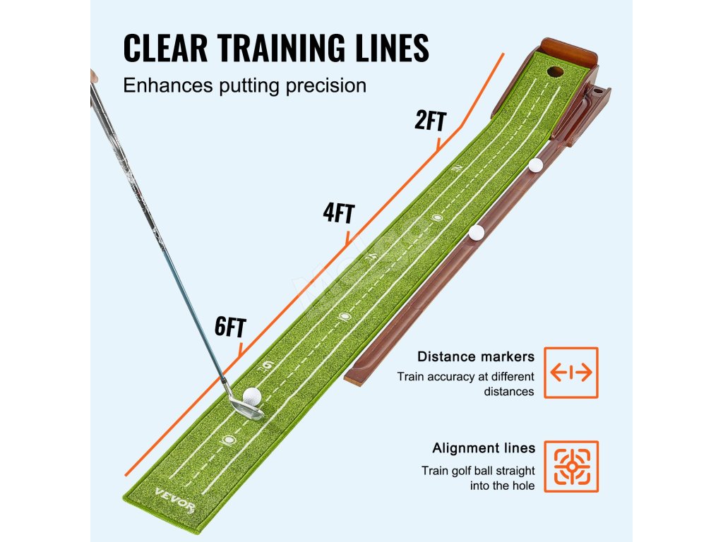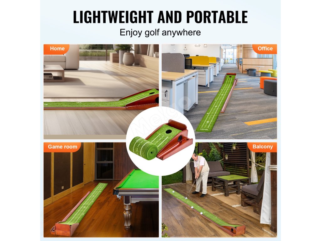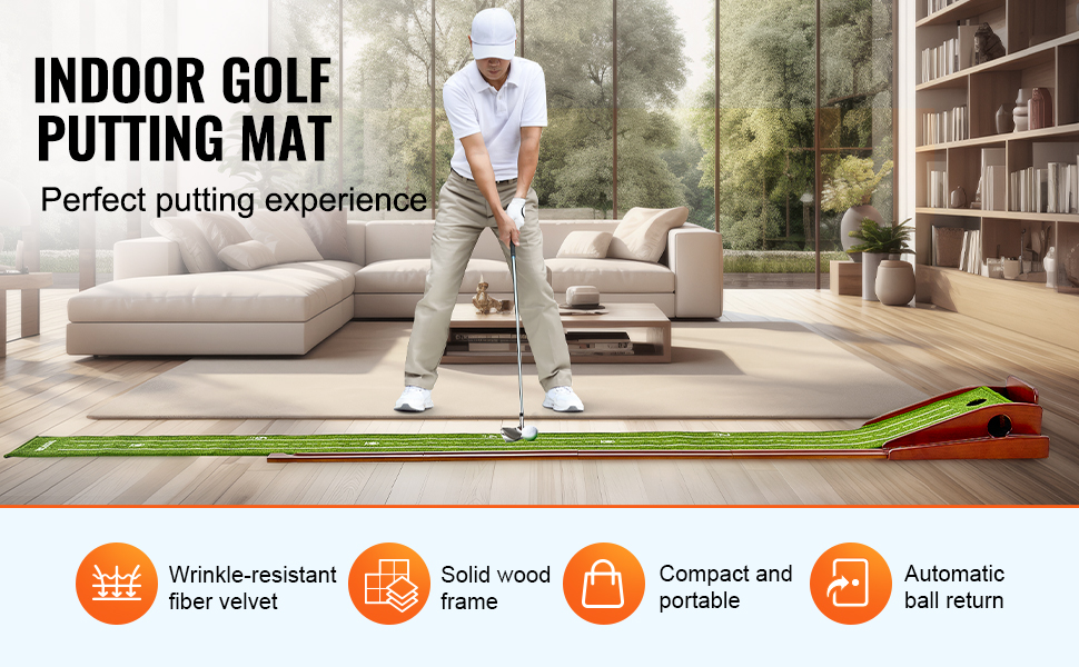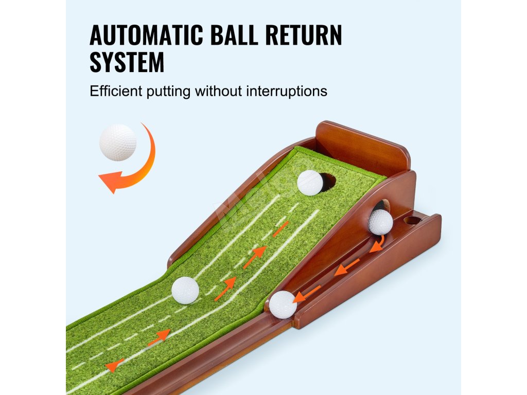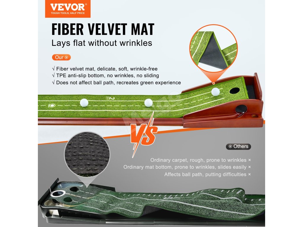 Mäkký a jemný zamatový koberec s vláknami leží bez pokrčenia, zatiaľ čo rám z masívneho dreva a systém automatického vrátenia loptičky zabezpečujú plynulý a nepretržitý zážitok z odpaľovania. Ľahká a prenosná golfová podložka na puttovanie vám umožní vychutnať si fantastický golfový tréning v akomkoľvek vnútornom priestore.