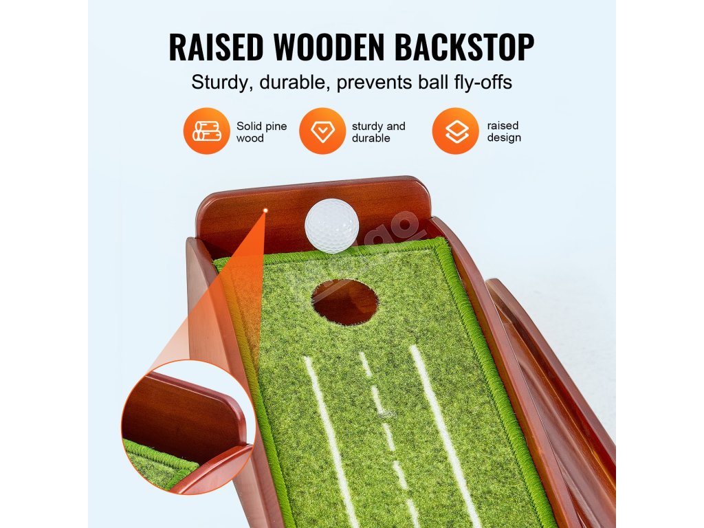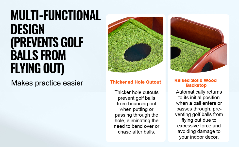 Silnejšie výrezy na otvory a vyvýšené zadné steny z masívneho dreva zabraňujú odskakovaniu alebo vylietavaniu golfových loptičiek, čím šetria čas pri ich získavaní. Môže výrazne zvýšiť efektivitu vášho tréningu.