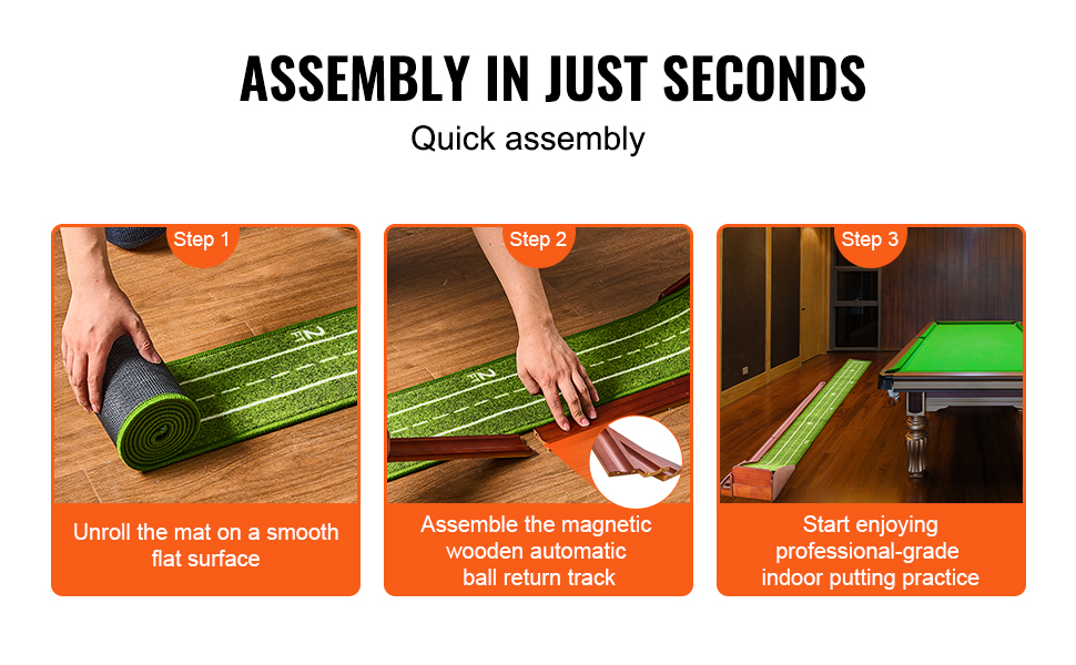 Jednoducho rozložte golfový putting systém , pripojte dráhu na vracanie loptičiek, položte ju vedľa podložky a začnite trénovať putting. Každá dráha na vracanie loptičiek je na oboch koncoch vybavená magnetmi na bezpečné a jednoduché zostavenie. Je jednoduchá na zostavenie, vhodná pre deti aj starších ľudí.