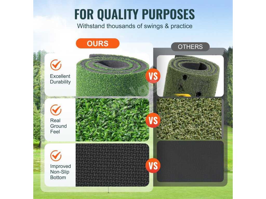 Naša golfová podložka na odpal je navrhnutá s ohľadom na trvanlivosť a výkon, dokáže vydržať tisíce švihov a tréningov bez toho, aby sa znehodnotila. Vylepšená protišmyková spodná časť vyrobená z materiálu EVA+PE zaisťuje stabilitu a bezpečnosť počas používania.