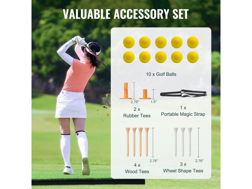 Golfová odpaľovacia podložka 5×4ft umelý trávnik, 10 loptičiek, 9 pegov