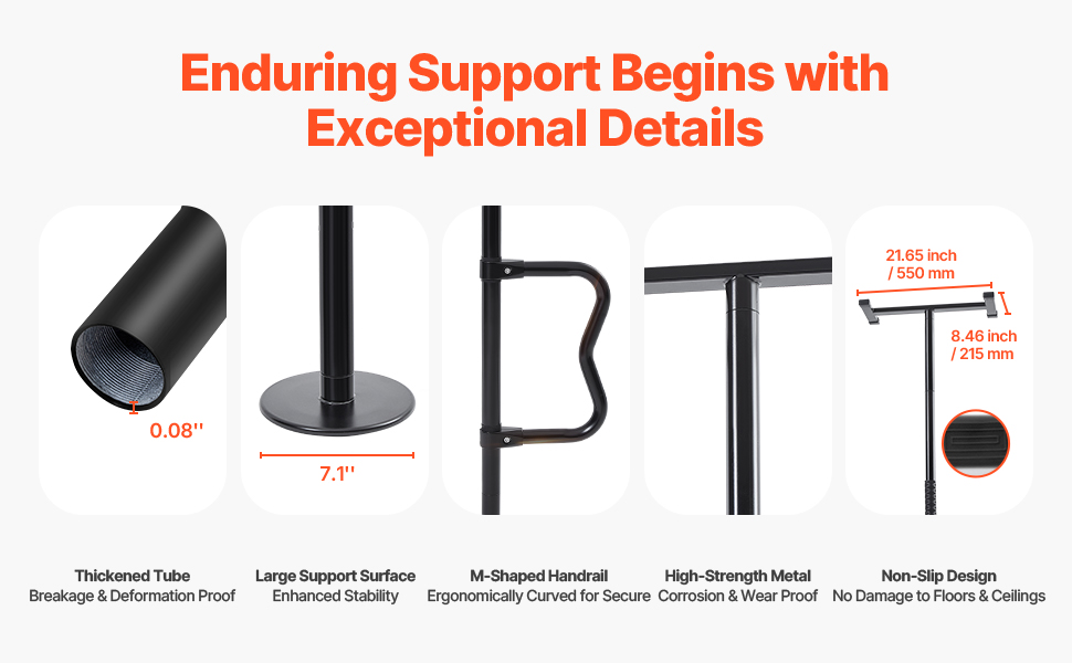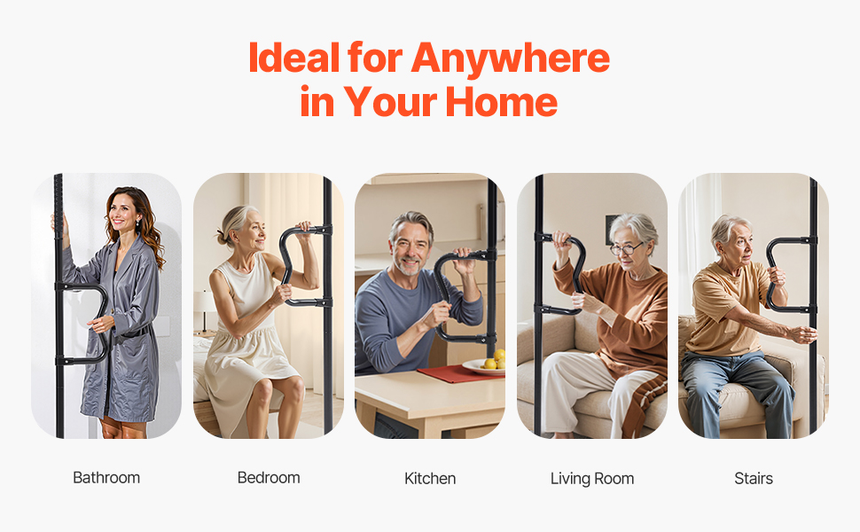 Montážou predlžovacích dielov ponúka táto nastaviteľná tyč od podlahy k stropu 3 výškové nastavenia, ktoré sú vhodné na inštaláciu v kúpeľniach, spálňach a obývacích izbách. Dá sa rýchlo rozobrať a opäť zložiť na použitie v rôznych prostrediach, čím sa prispôsobí členom rodiny s obmedzenou pohyblivosťou.