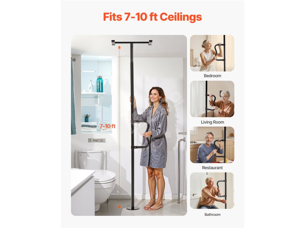 Montážou predlžovacích dielov ponúka táto nastaviteľná tyč od podlahy k stropu 3 výškové nastavenia, ktoré sú vhodné na inštaláciu v kúpeľniach, spálňach a obývacích izbách. Dá sa rýchlo rozobrať a opäť zložiť na použitie v rôznych prostrediach, čím sa prispôsobí členom rodiny s obmedzenou pohyblivosťou.