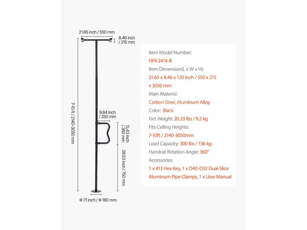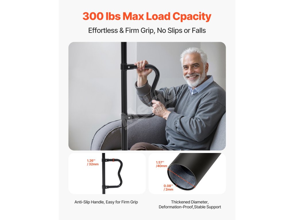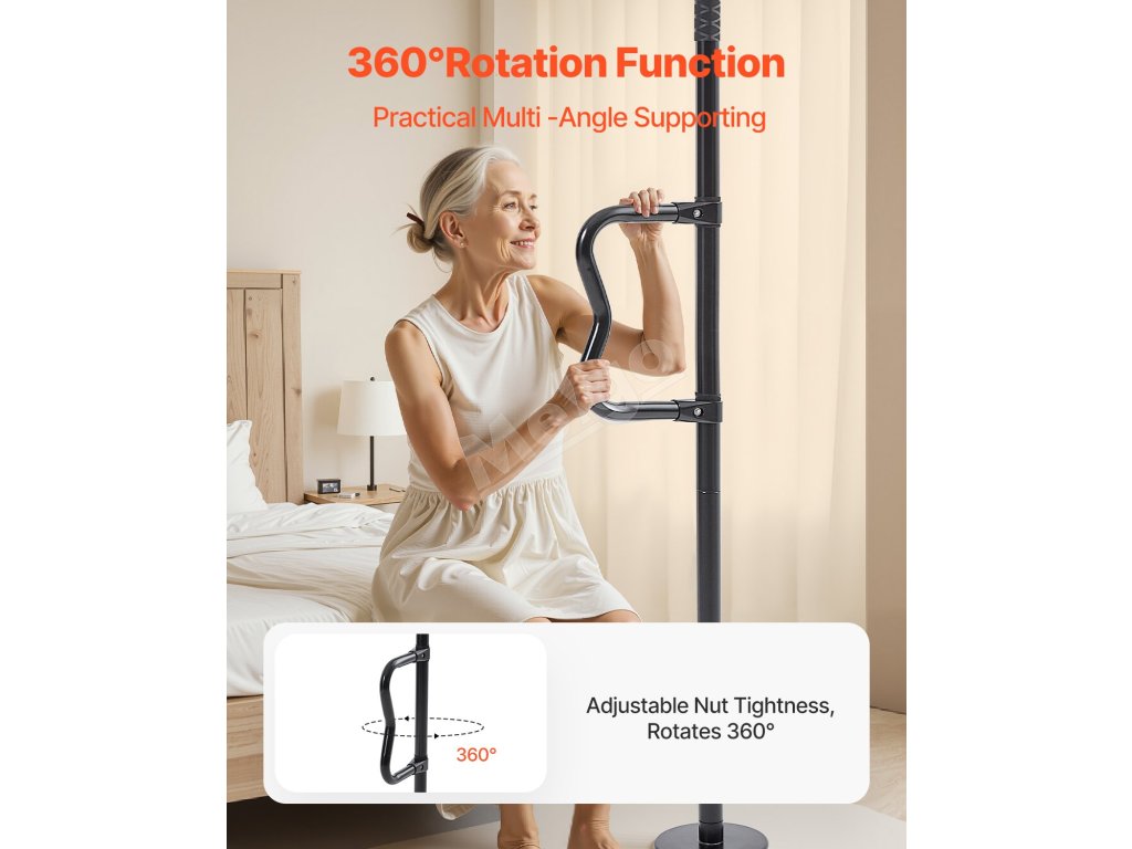 Naše madlo od podlahy k stropu má robustnú nosnosť 300 kg, čo zaručuje použitie v spálni, kúpeľni, na toalete atď. Vďaka nastaviteľnej výške 7-10 stôp sa nemusíte obávať výšky stropu. Otáča sa o 360° s intervalmi uzamknutia 45°, pričom nastavením skrutiek ponúka ideálny uhol opory.